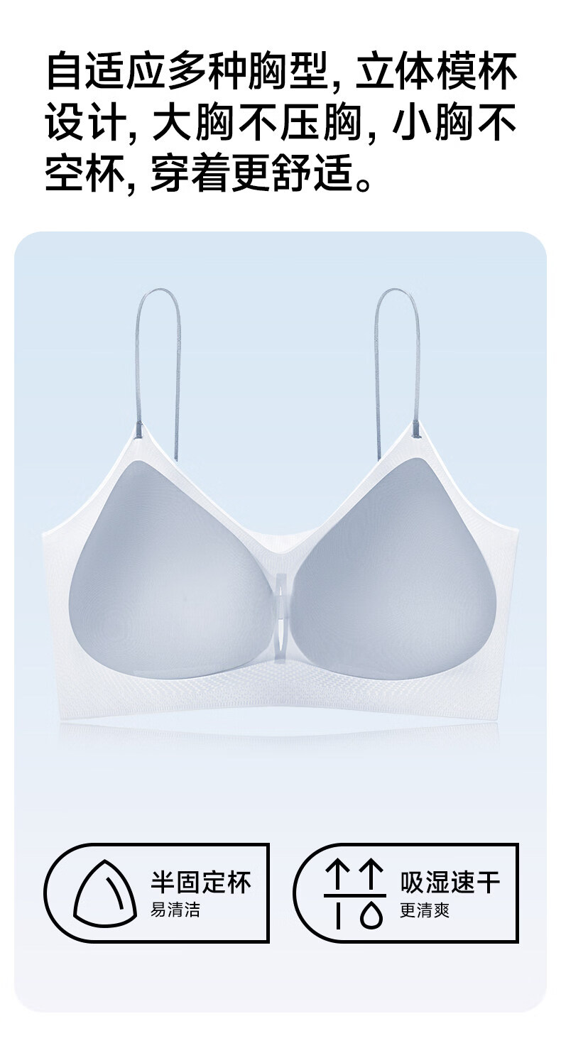 Herbal primary color steel-free breathable seamless women's bra for large breasts push-up adjustable solid color spaghetti strap underwear white + blue spaghetti straps _two pieces for a better discount M _(75ABC)