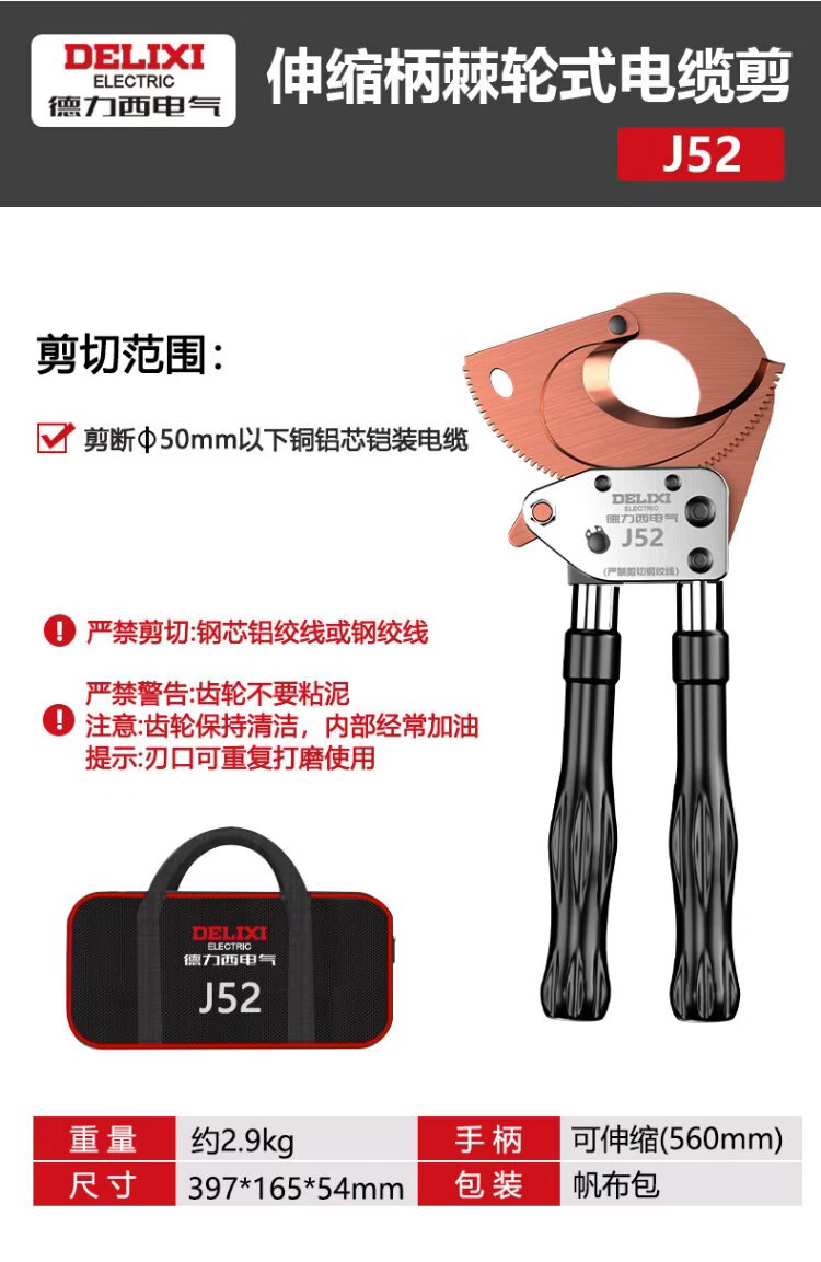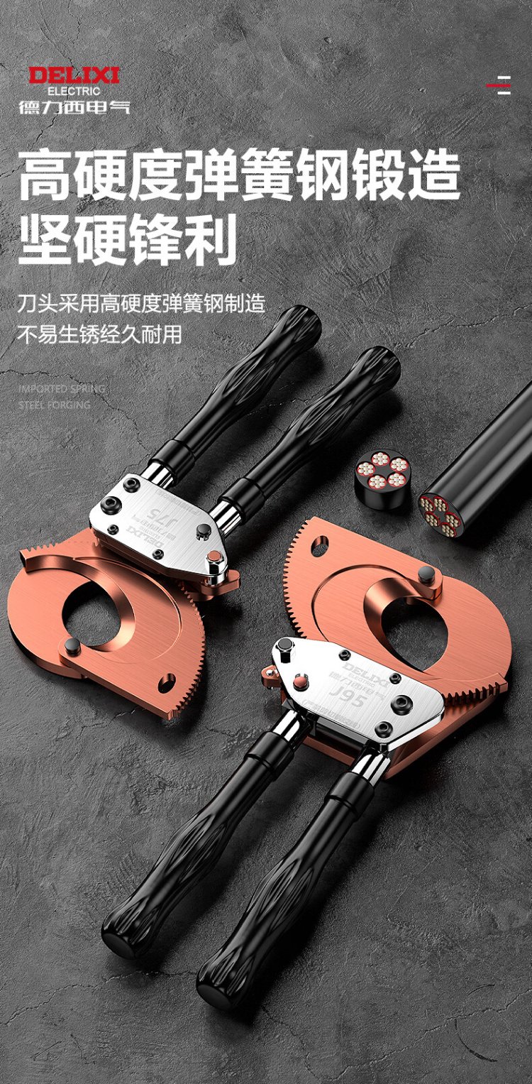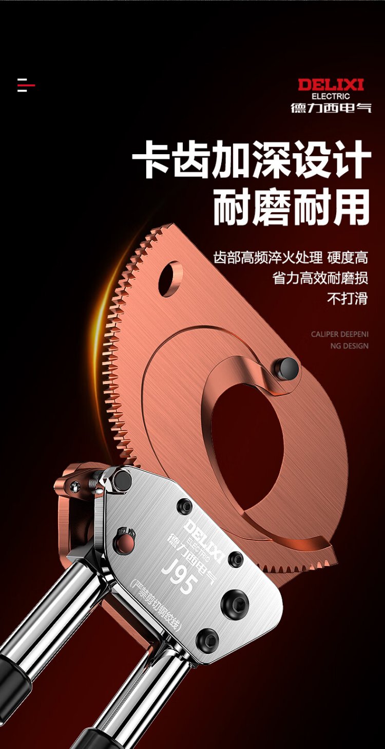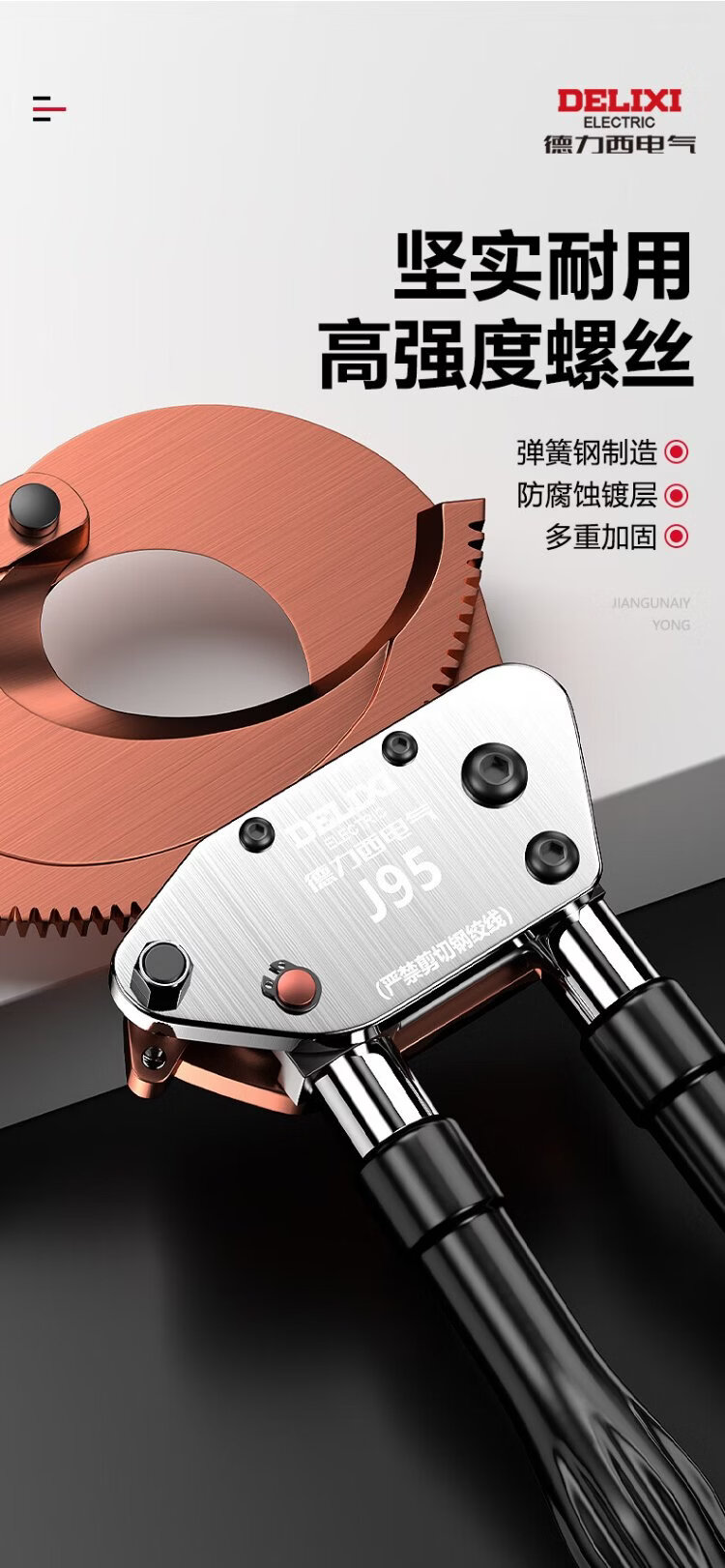 DELIXI ELECTRIC Ratchet Cable Cutter Gear Bolt Cutters Lightweight Electrical Wire Strand Cutting Cable J52 Industrial Grade Ratchet Cable Cutter