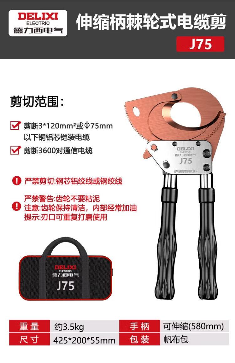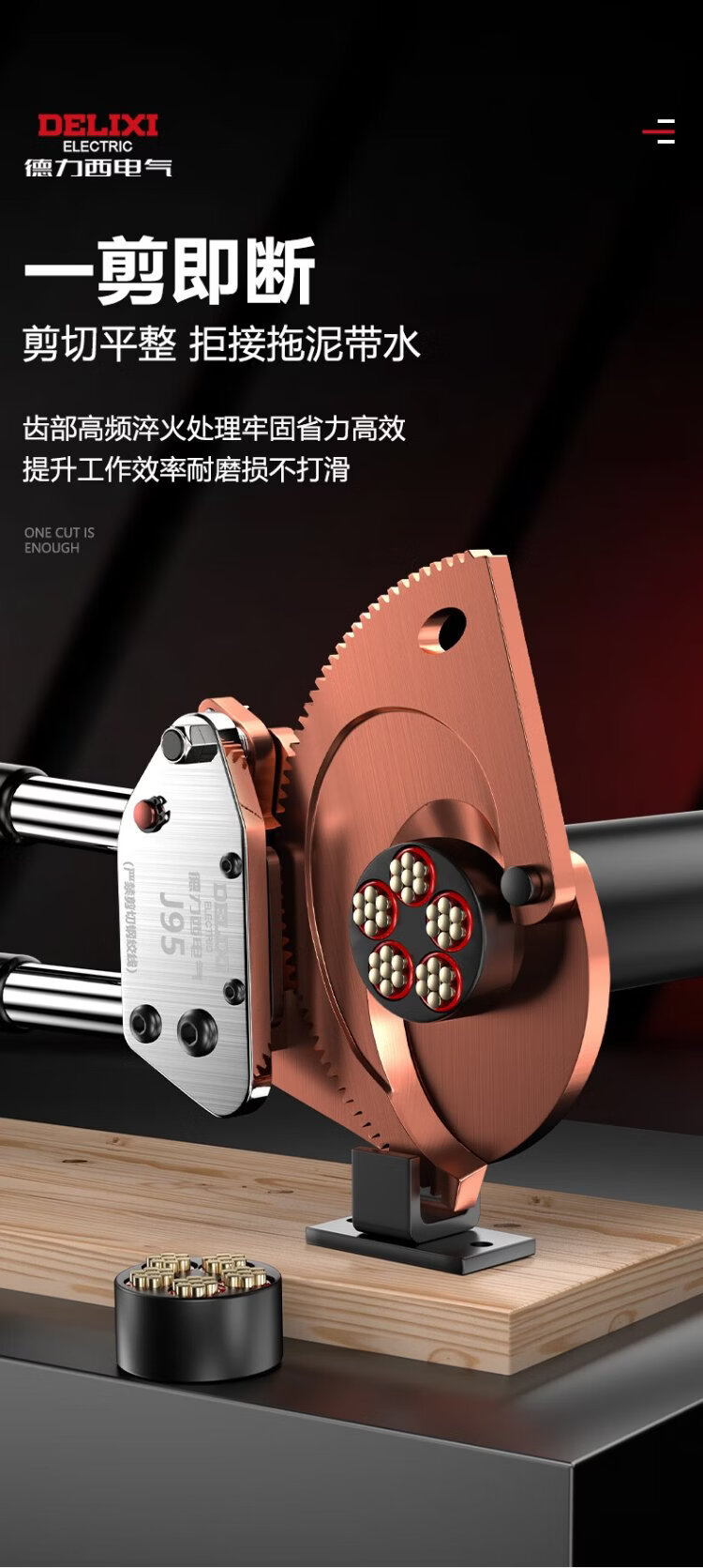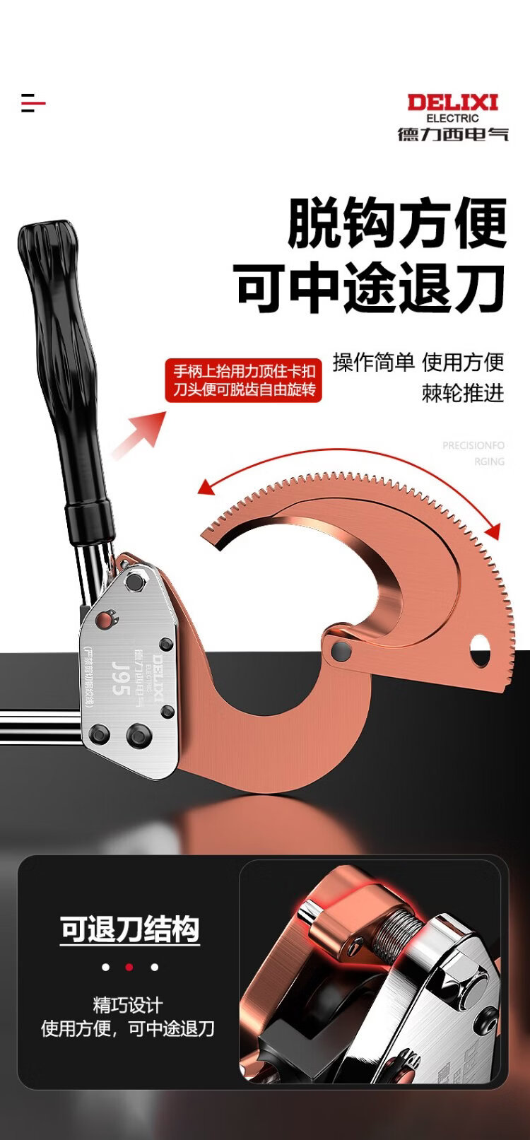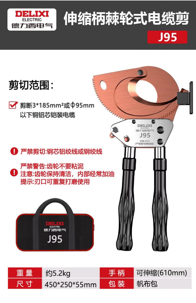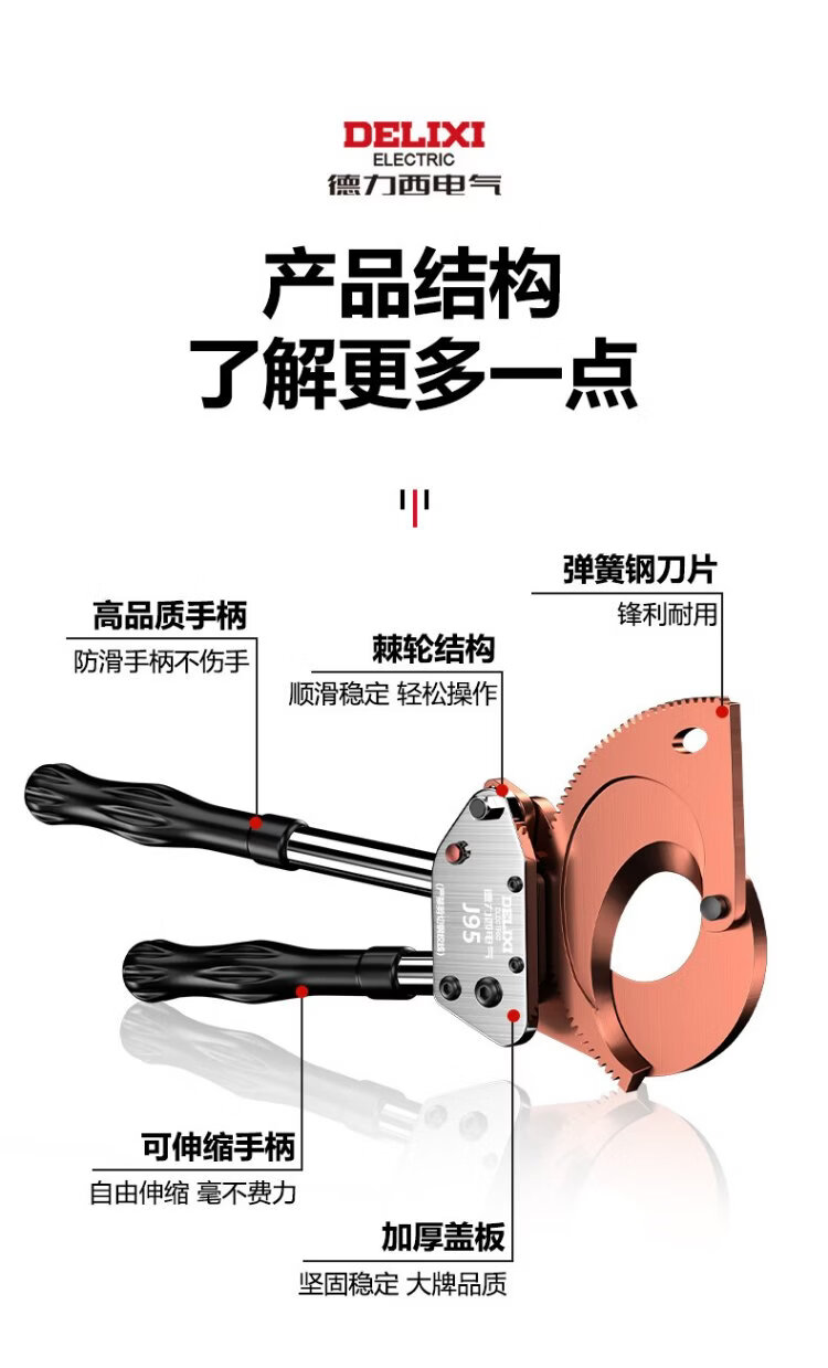 DELIXI ELECTRIC Ratchet Cable Cutter Gear Bolt Cutters Lightweight Electrical Wire Strand Cutting Cable J52 Industrial Grade Ratchet Cable Cutter