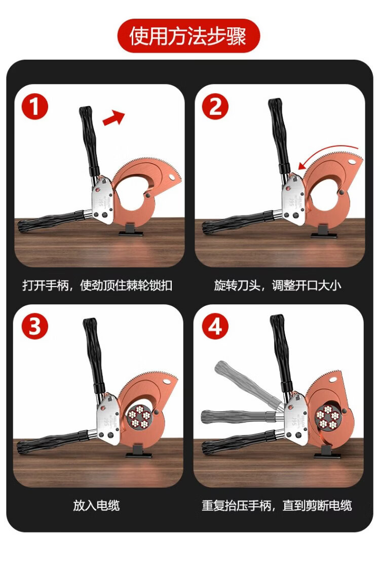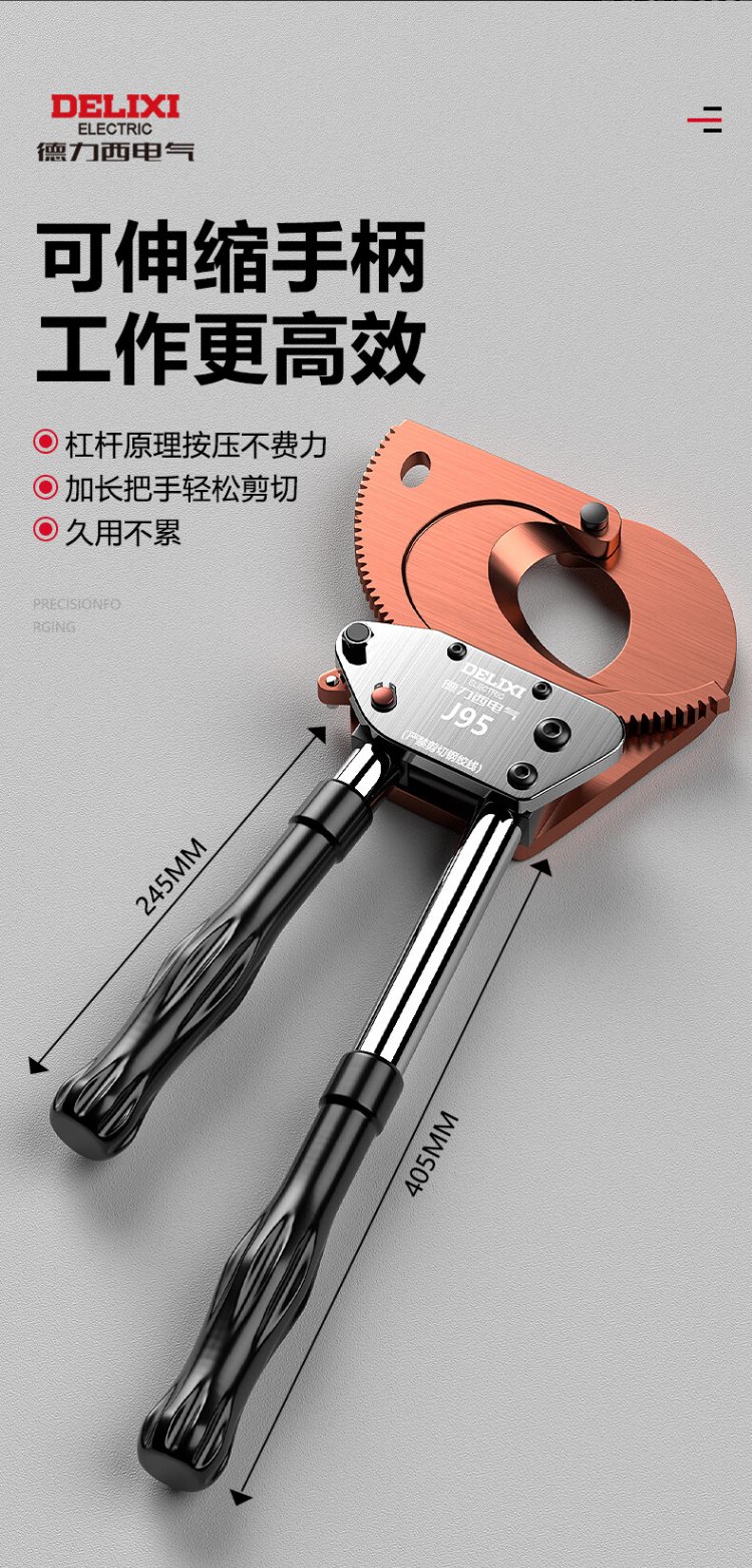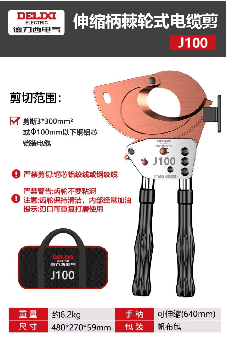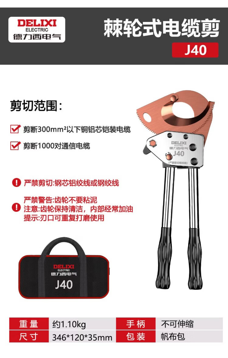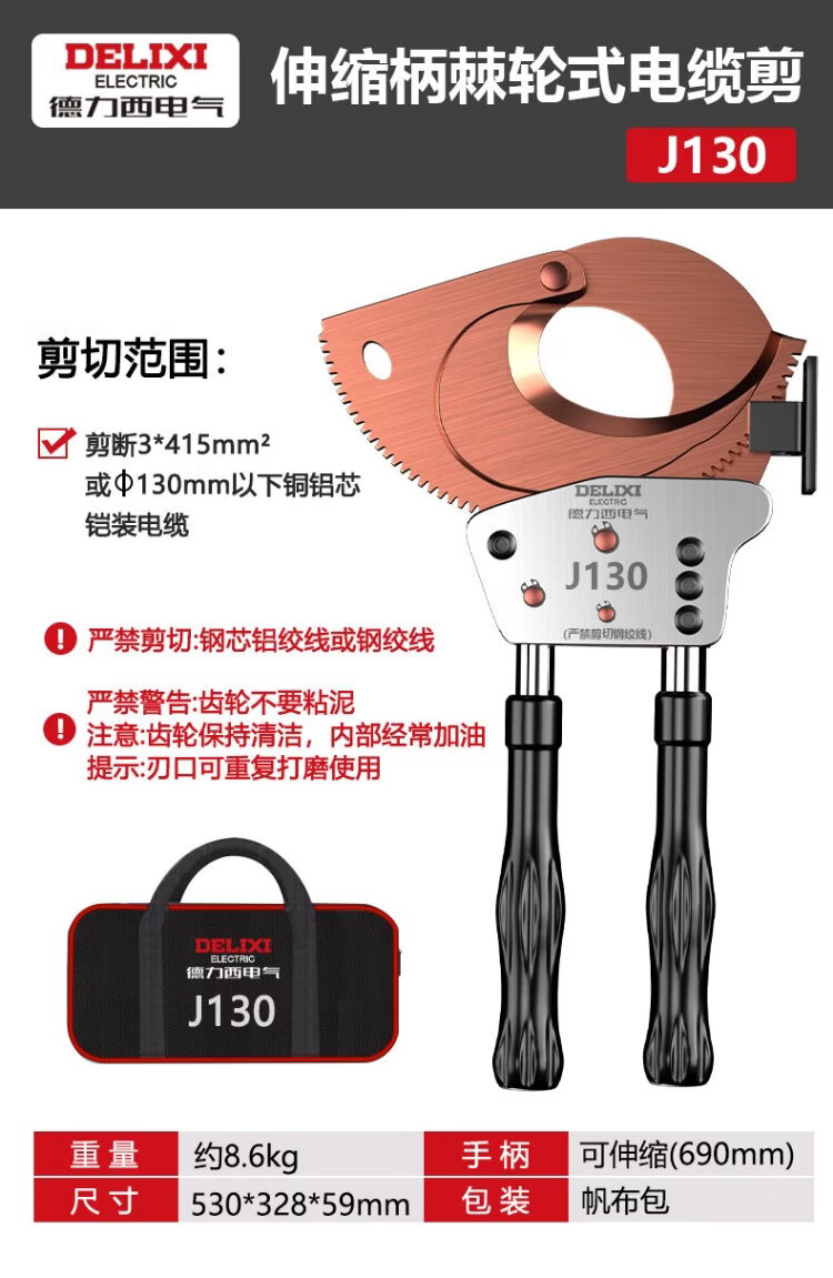 DELIXI ELECTRIC Ratchet Cable Cutter Gear Bolt Cutters Lightweight Electrical Wire Strand Cutting Cable J52 Industrial Grade Ratchet Cable Cutter