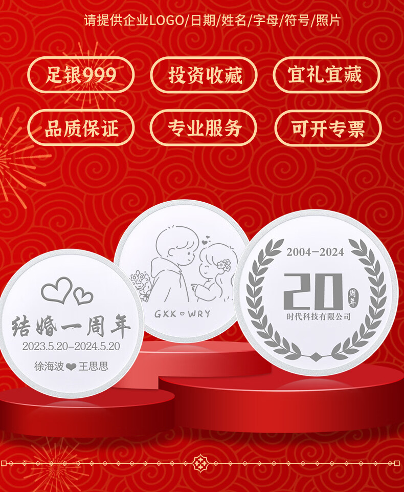 Tico silver bars pure silver 999 customized silver bars can be DIY investment collection corporate gifts home Valentine's Day gift bare plate silver coins - text customization - labor costs extra 5g