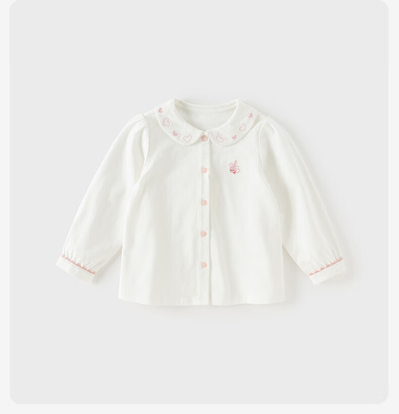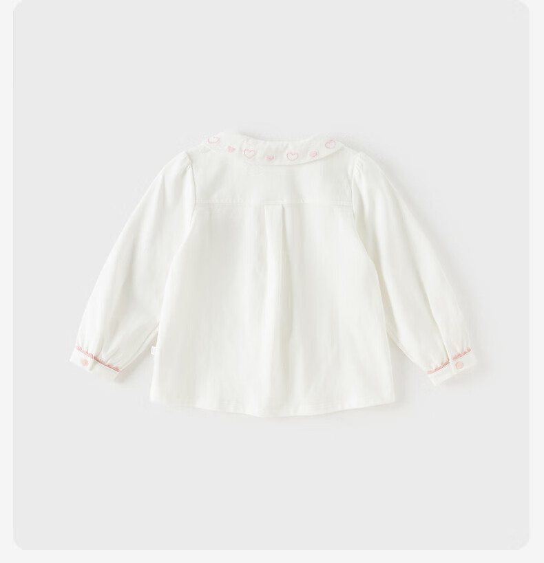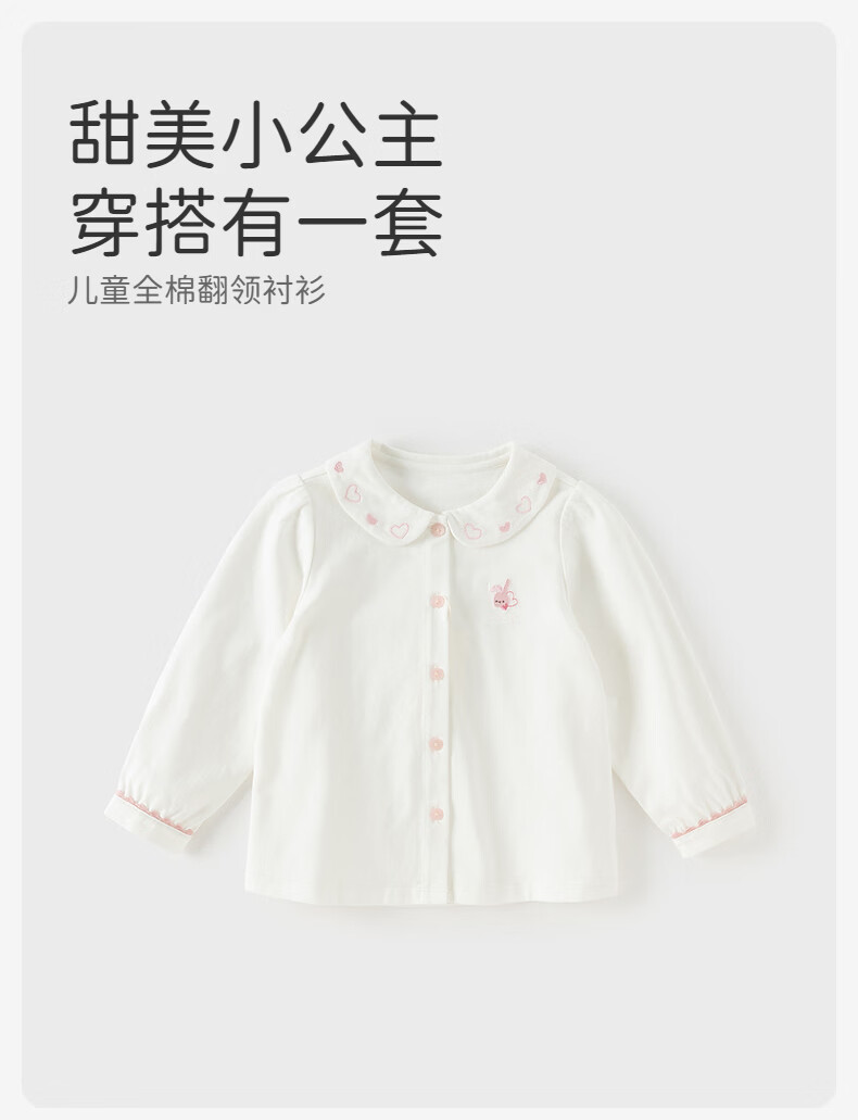 DAVE&BELLA 2026 Spring New Pure Cotton Girls White Shirt Girl Baby Shirt Children's Long-Sleeved Top Children's Bottoming Shirt White Ready in Stock 110 cm (recommended height 100-110cm)