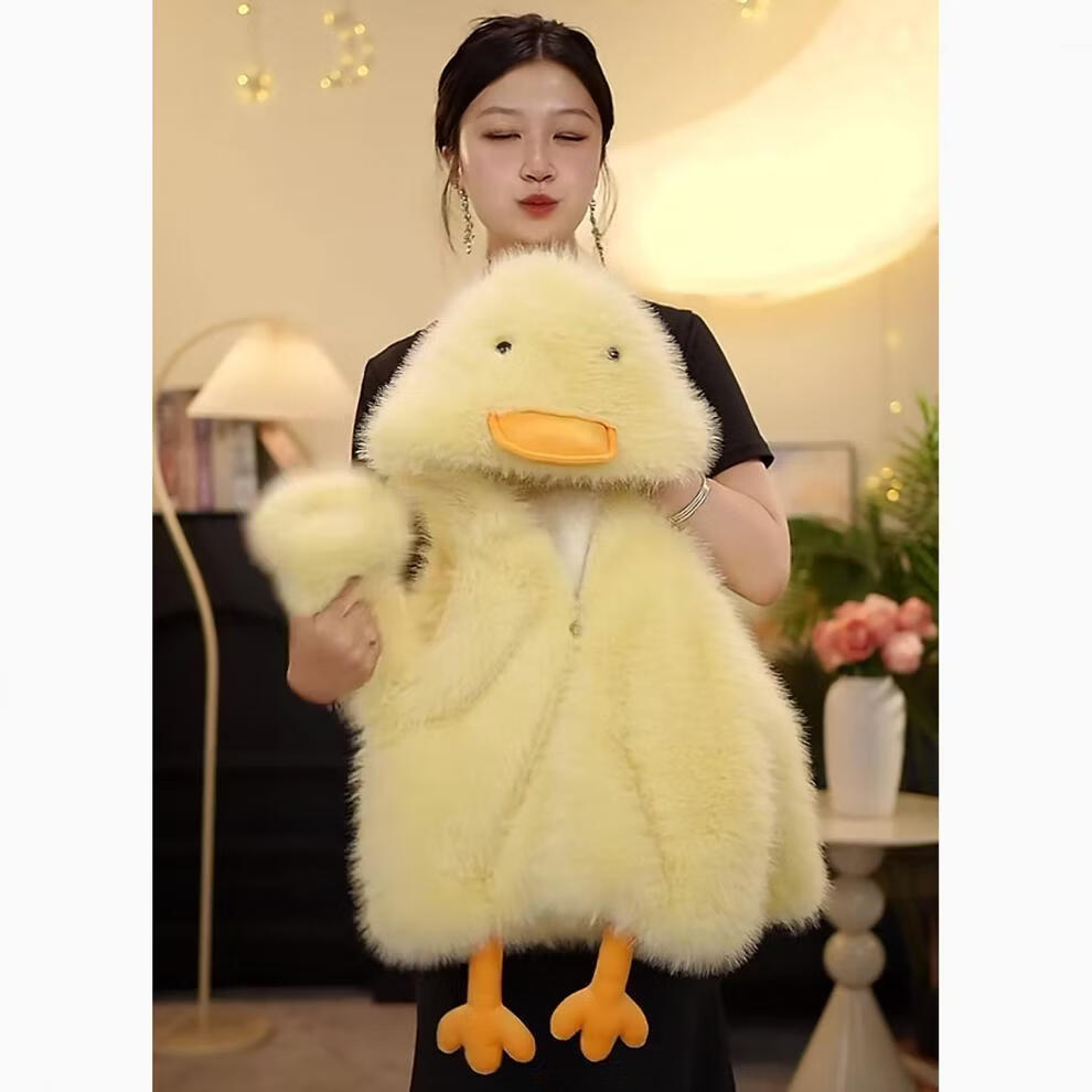 Disney (Disney) Girls' Velvet Jacket 2025 Winter New Children's Cartoon Cute Cotton Jacket Baby Girl Winter Thick Wool Sweater Little Yellow Duck 80