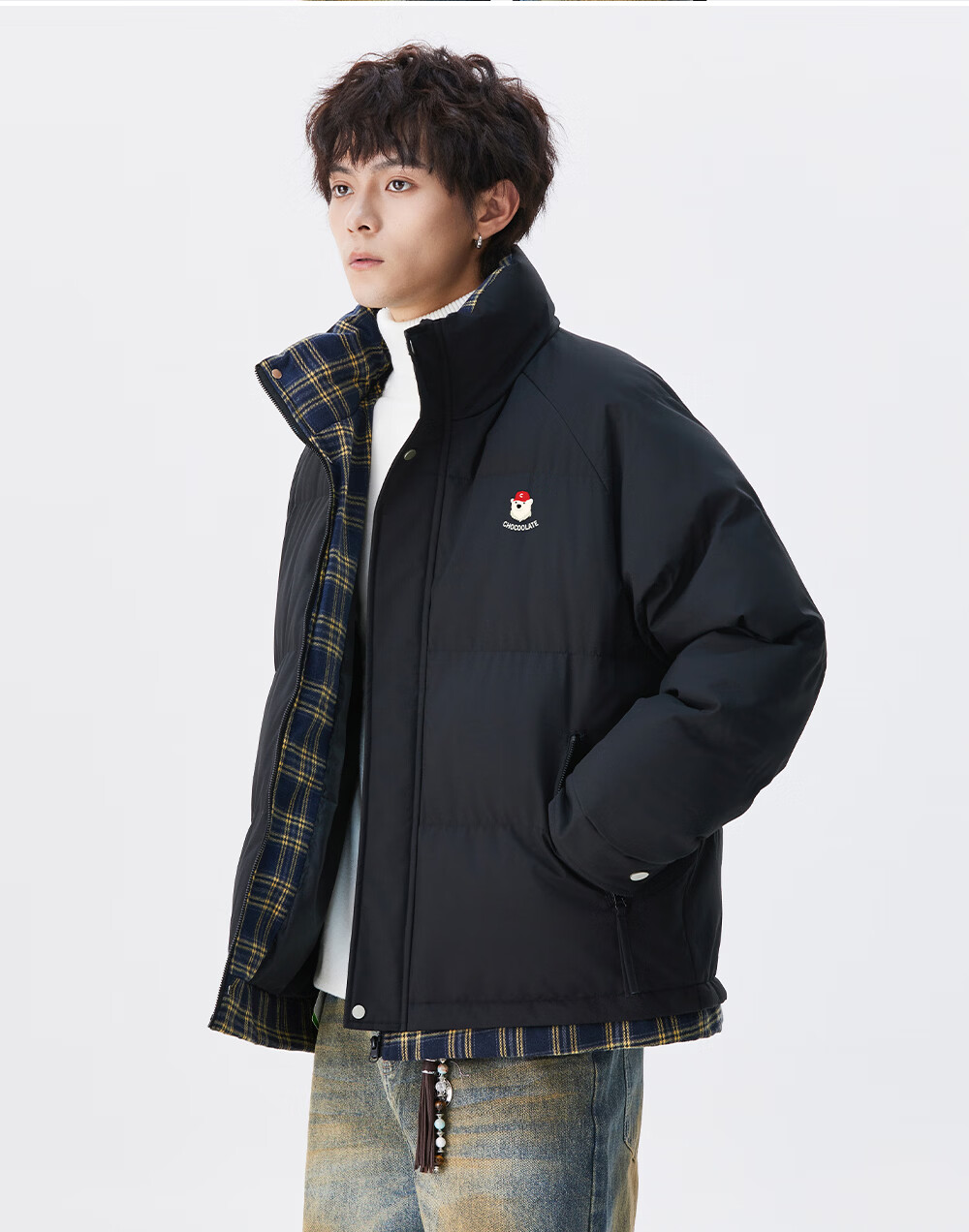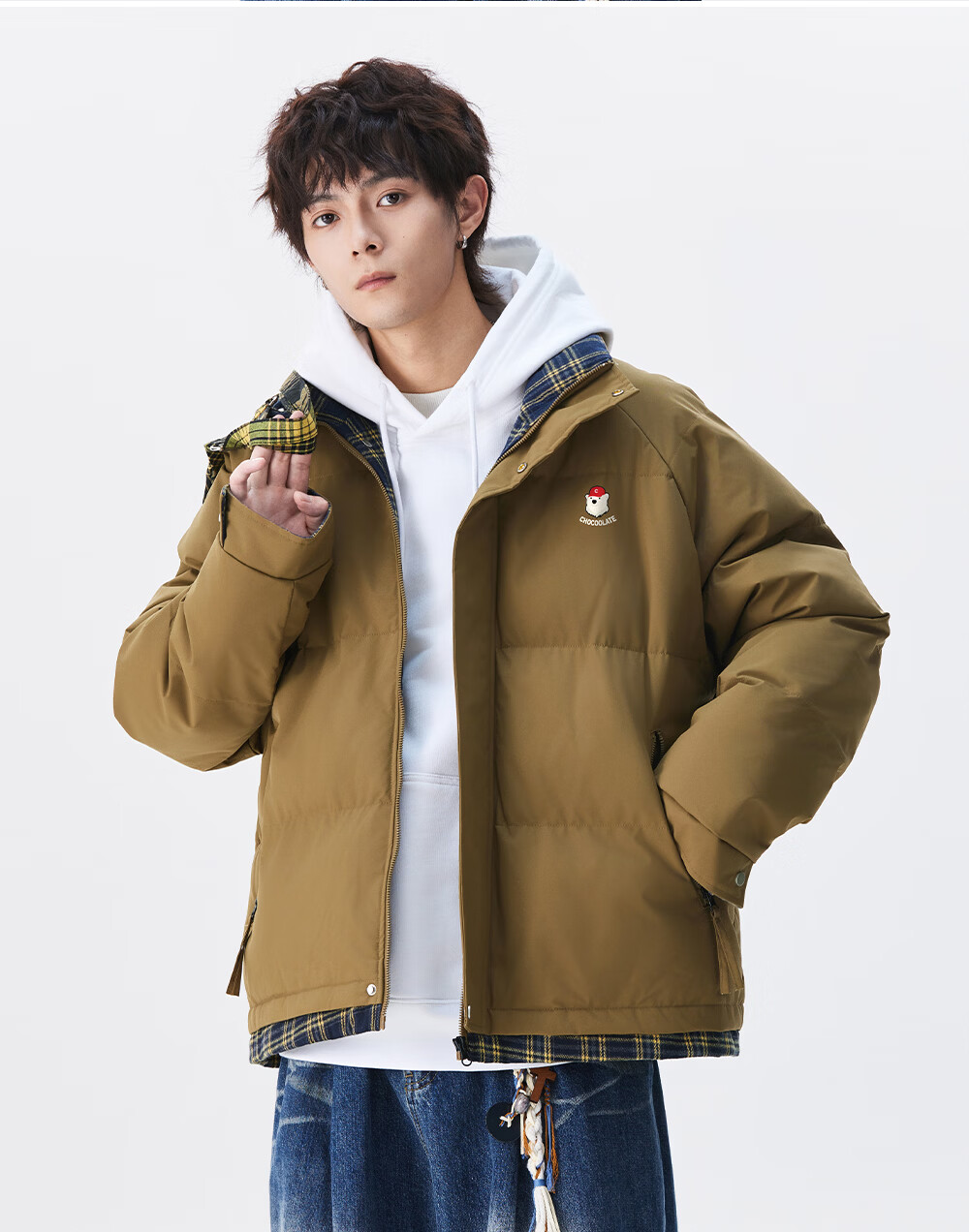 CHOCOOLATE it American trendy brand fake two-piece design loose cotton jacket for men in winter cold-proof, warm, comfortable, casual and versatile jacket off-white 2XL recommended 165-190Jin Jin equals 0.5 kg