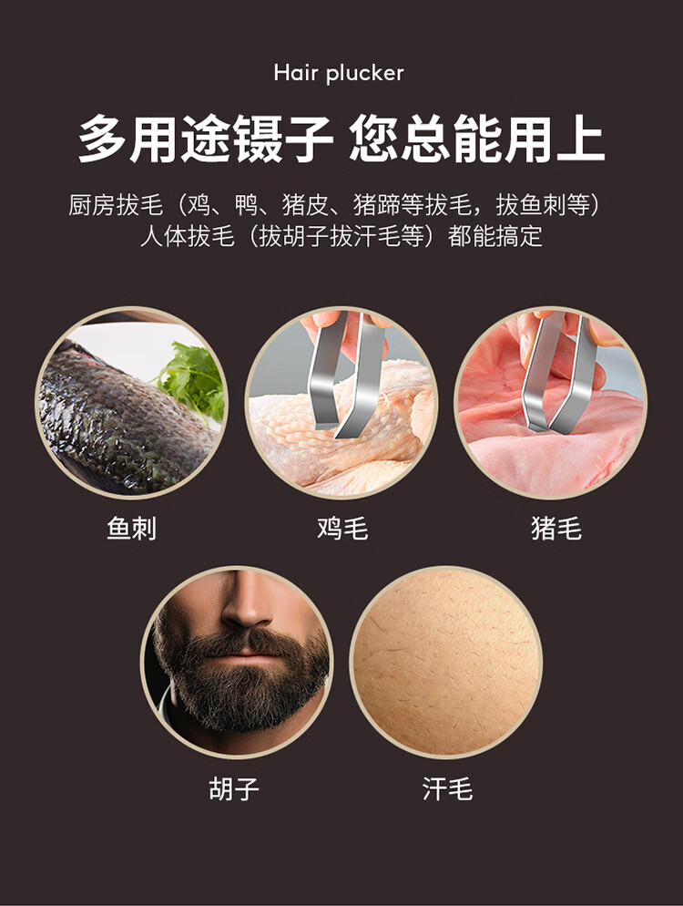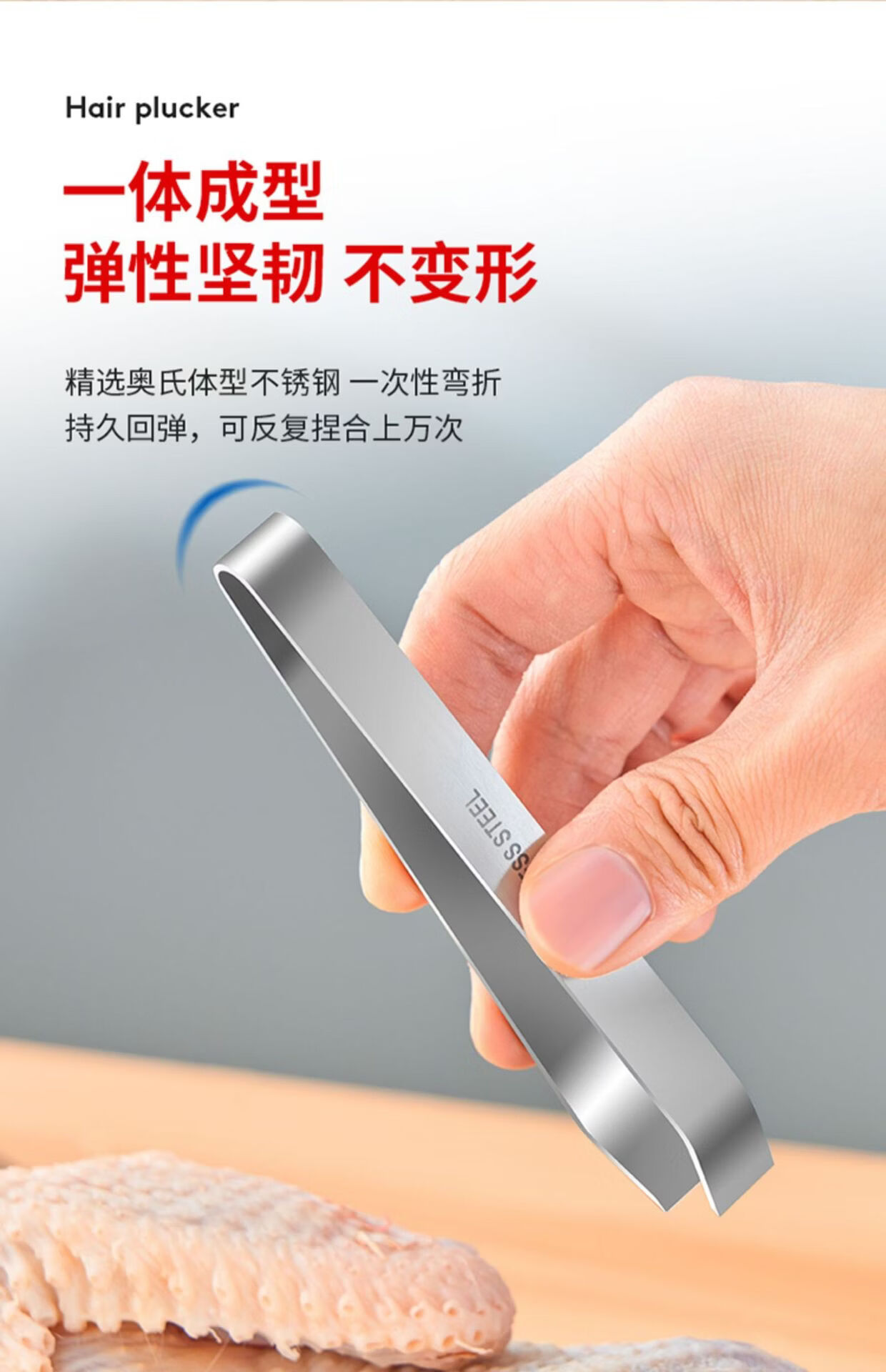 Shantou Lincun Chicken and Duck Feathering Artifact Household Kitchen Tools Garlic Peeling Tweezers Plucking Pig Hair Stainless Steel Hair Removal Pliers Household Sharp Knife 3 Pack