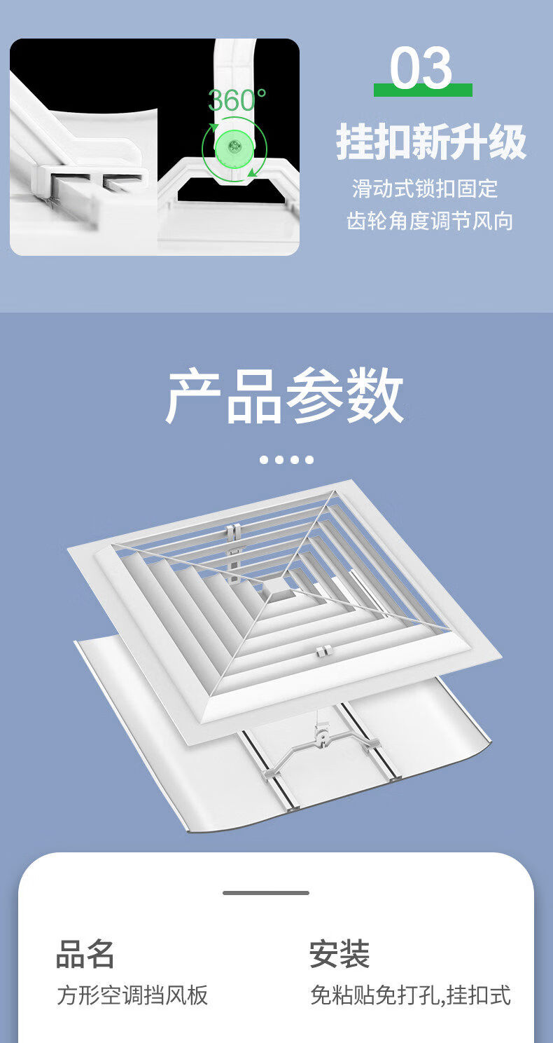 Pupan air conditioner windshield board office air duct ceiling embedded air conditioner square air outlet anti-direct blow shielding wind guide ceiling embedded air conditioner ceiling machine universal buckle type 58 cm single package 0x0x0cm