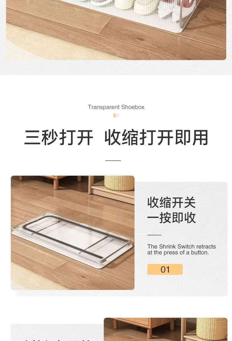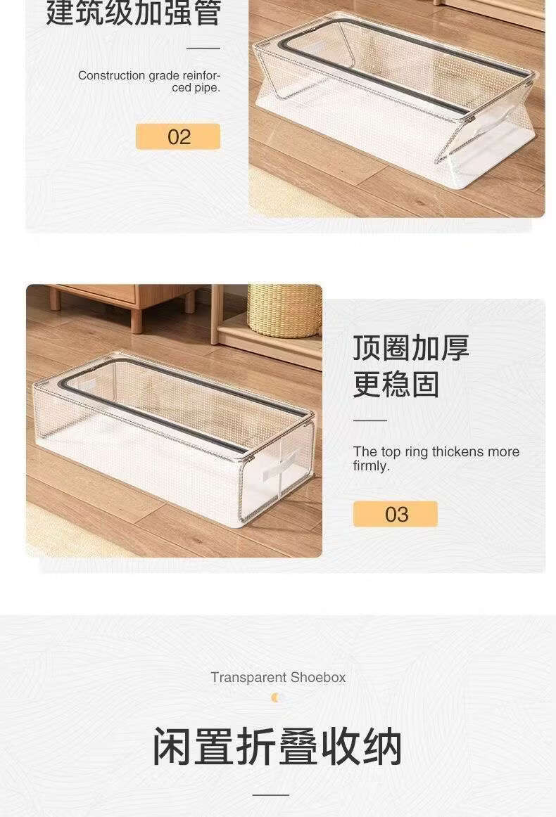 Yusenyi transparent shoe storage box thickened large capacity dust-proof and moisture-proof shoe box household under-bed clothing storage box 1 pack can store shoes, clothes, etc. 40x30x15cm