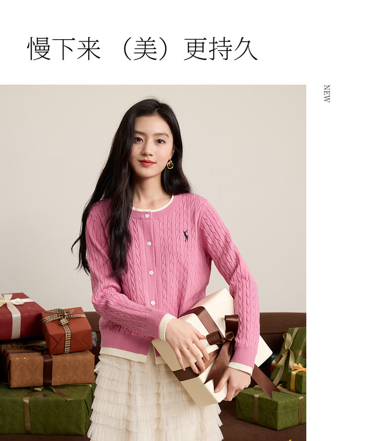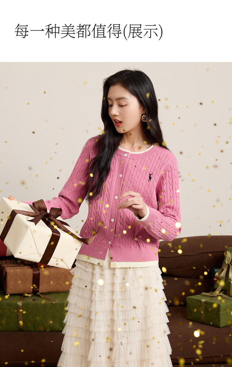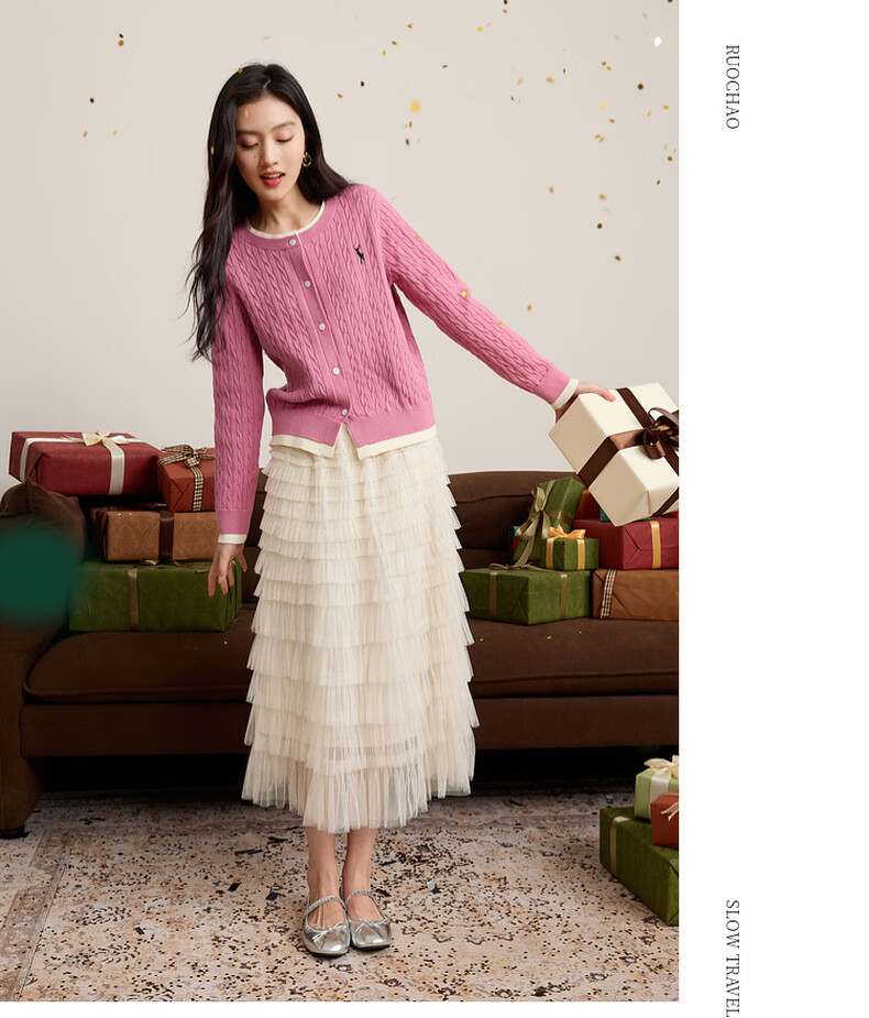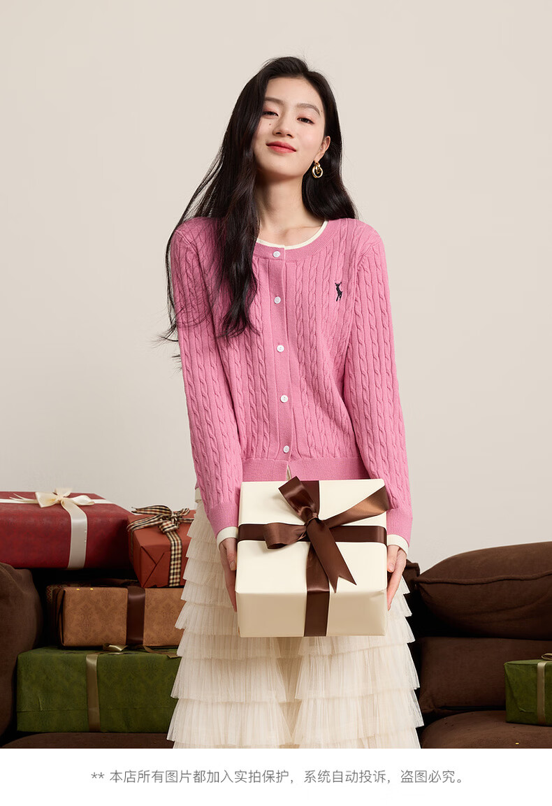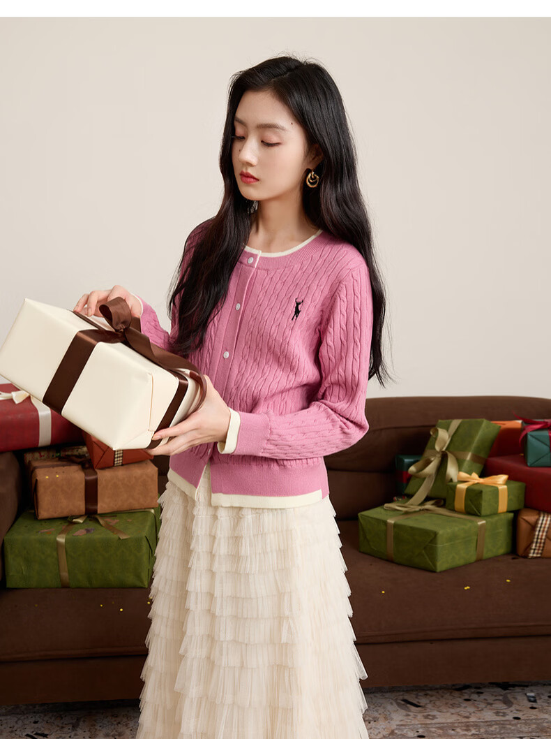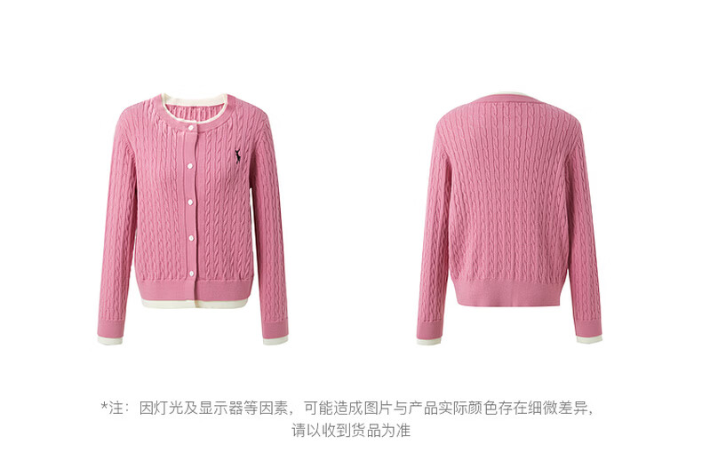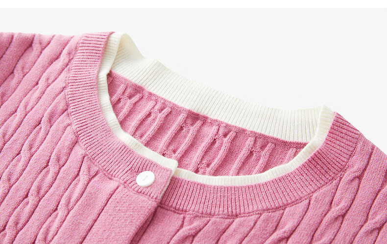 Sancai Ruochao plus size women's clothing 2026 spring new style fake two-piece knitted cardigan jacket cable embroidery fat mm cherry blossom pink M 160/88B