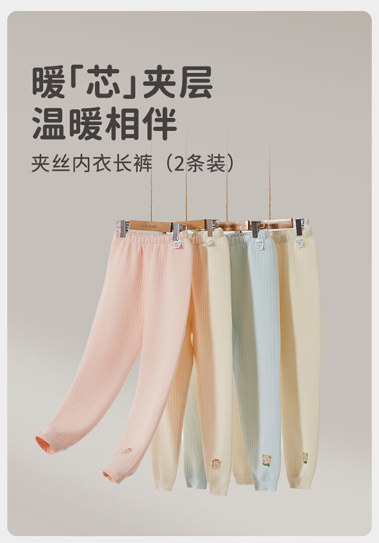 Rabbi shopping mall same style Rabbi children's silk trousers to keep warm at home for boys and girls winter leggings 2 packs pink/pink yellow 130 cm