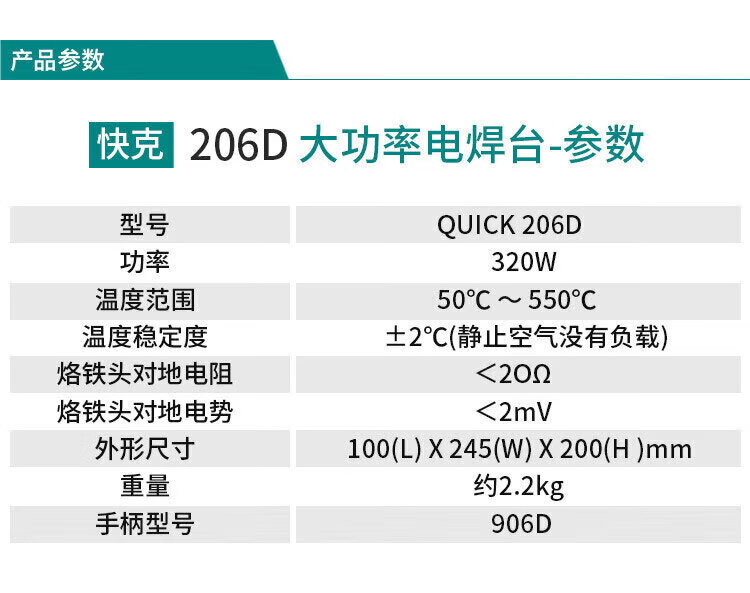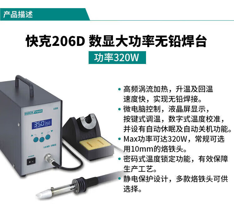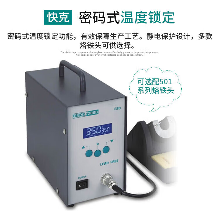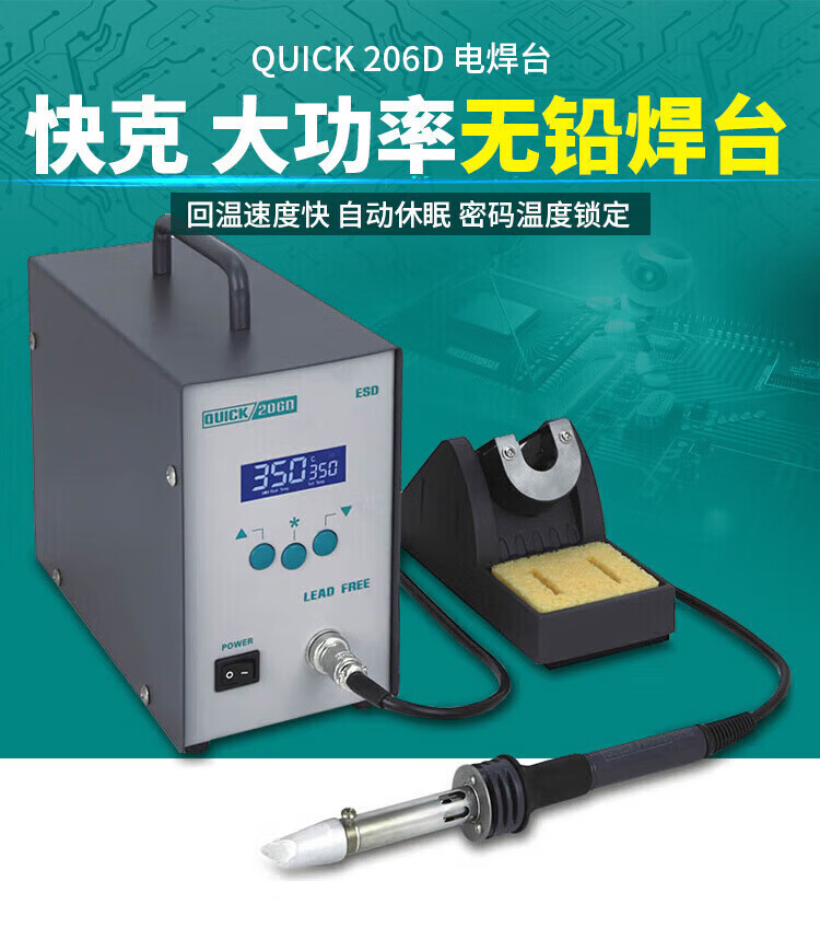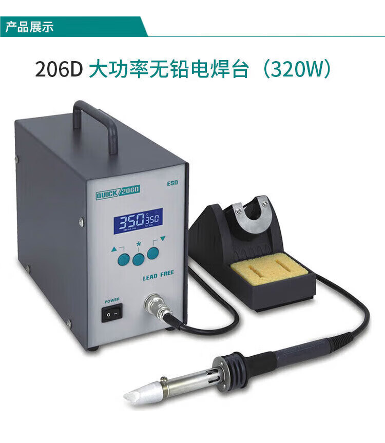 QUICK 320W high-power digital display soldering iron lead-free soldering station automatic sleep password locking soldering station QUICK 206D 320W/50 ~550