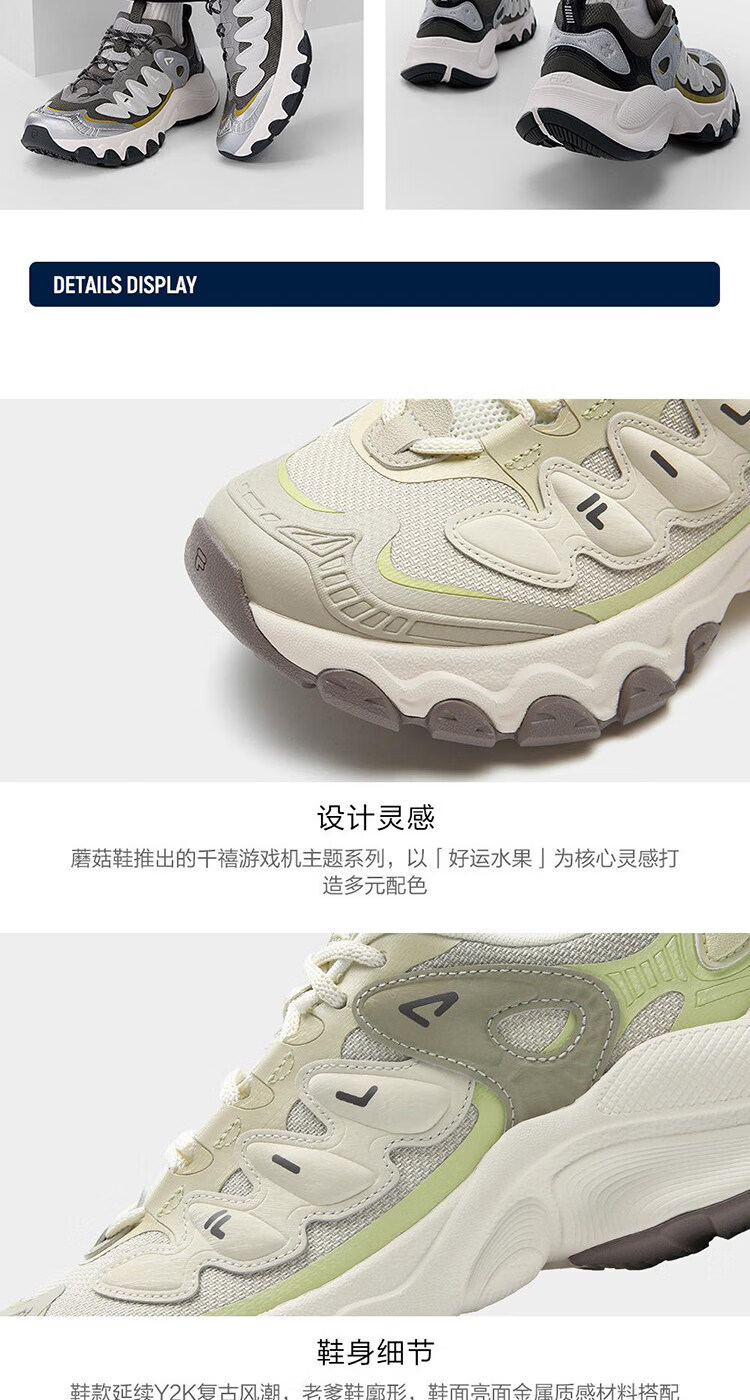 FILA Women's Mushroom Shoes 2026 Spring Men's Heightening Sports Dad Shoes F12W/M612143 F12M612143FAM Agate Gray_White Marshmallow-Male 40