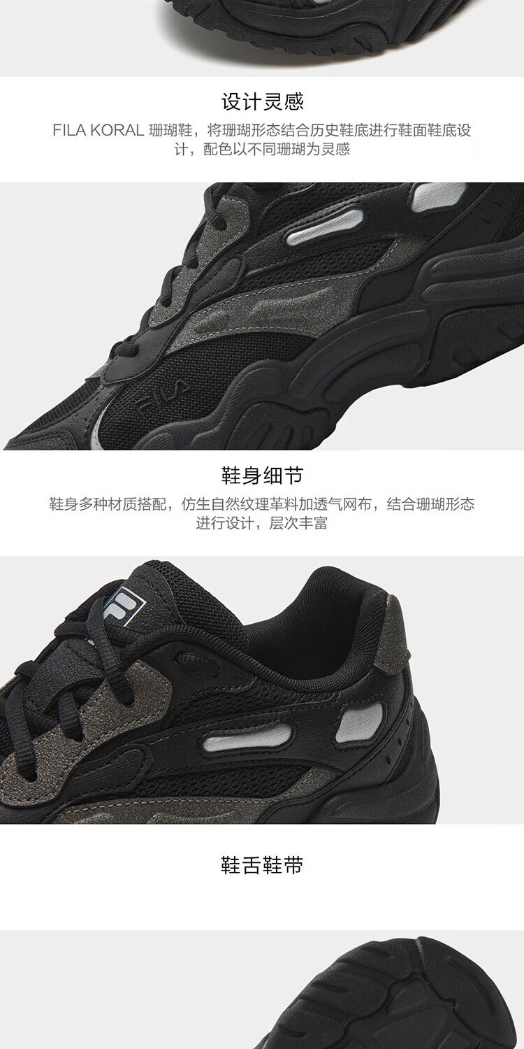 FILA Women's Coral Shoes 2026 Spring Men's Shoes Retro Sports Running Shoes F12WM612107 F12W612107FBP Black_Bin Gray-Female 35.5