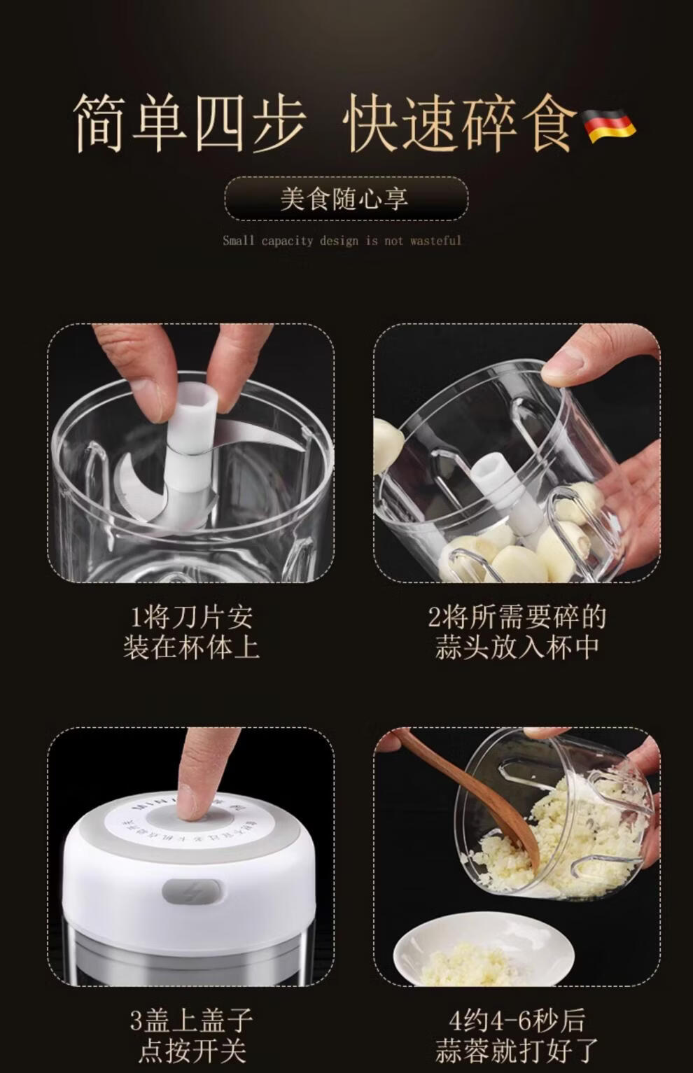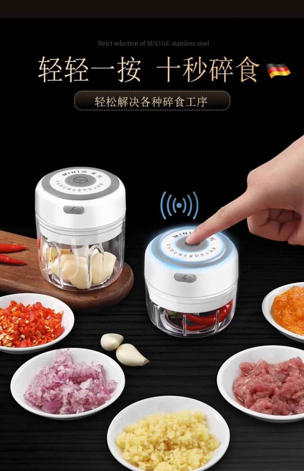 Garlic beater electric German garlic pounding garlic artifact electric garlic stirrer garlic chili garlic beater household baby electric garlic pounder small size 100ml