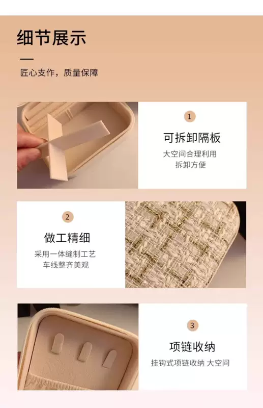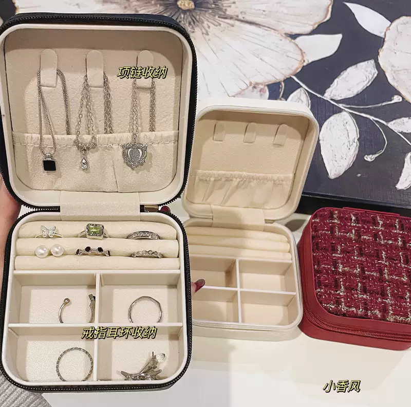 Yusenyi small fragrant style jewelry box portable small gold necklace ring earrings earrings hand jewelry jewelry storage anti-oxidation beige small fragrant style jewelry box beige small fragrant style jewelry box 1 layer 1 piece 1 layer