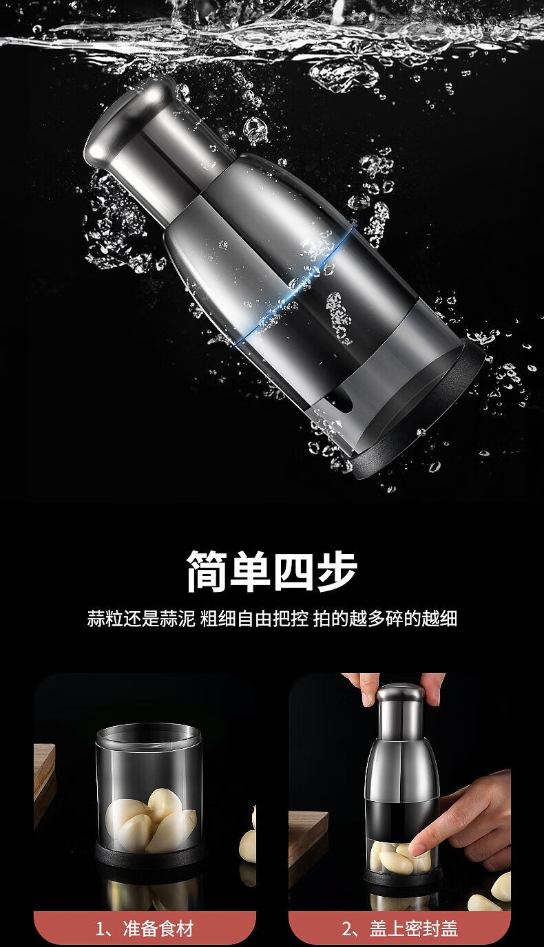 Garlic masher, pat knife, stainless steel garlic masher, household manual garlic pressing and cutting garlic artifact large version 304 stainless steel garlic press