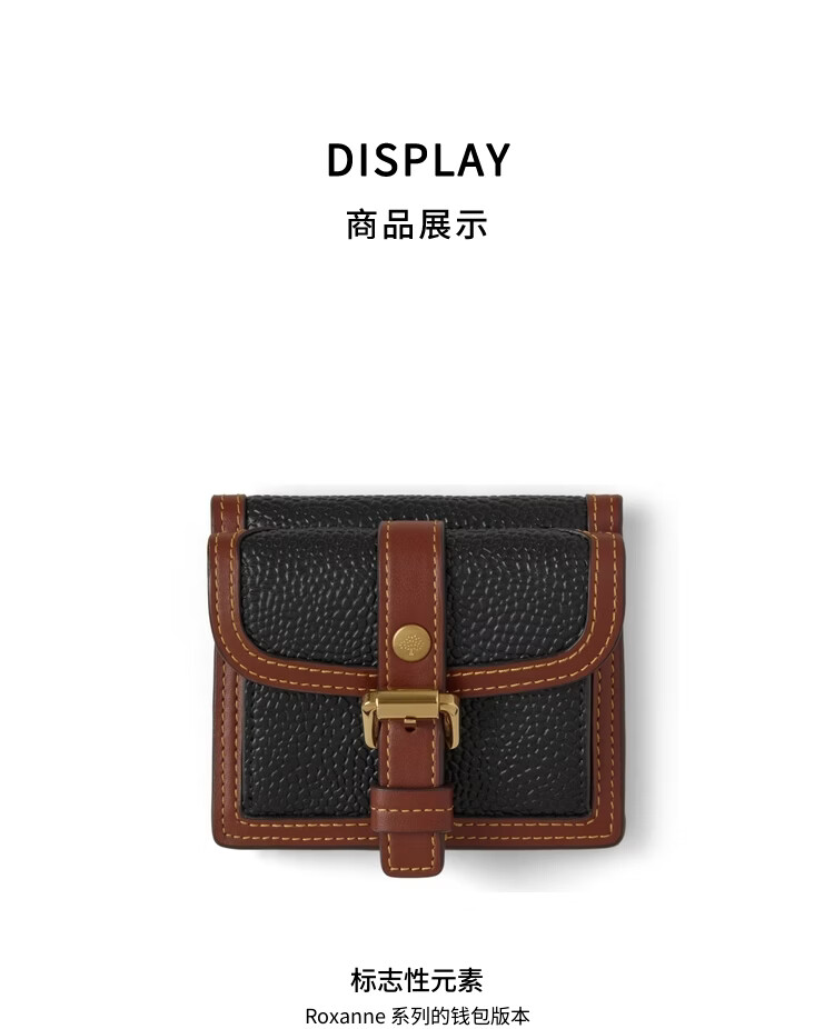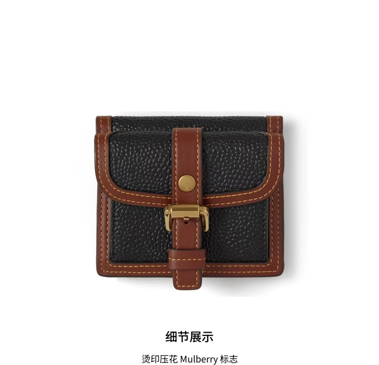 MULBERRY Gift/Roxanne Multi-Card Slot Wallet Card Holder Black and Cognac Brown