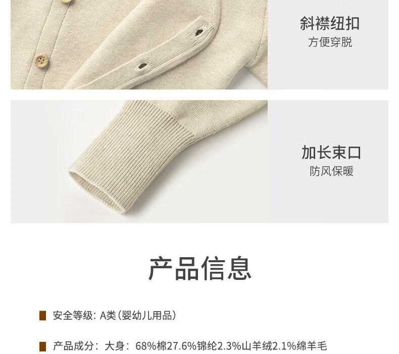 Koala Nose Roman Knight Wool Cashmere Baby and Toddler Autumn and Winter Warm Year of the Horse Western Style Versatile Jumpsuit White 59cm