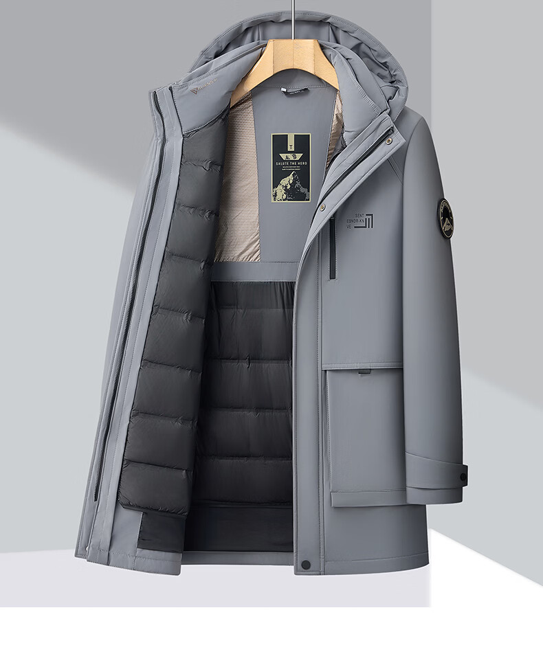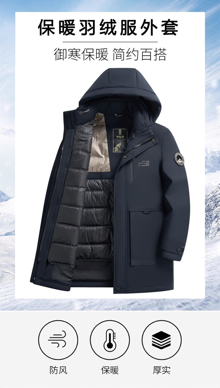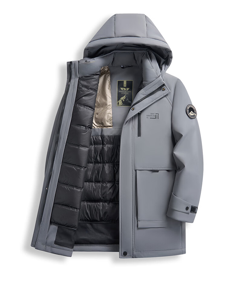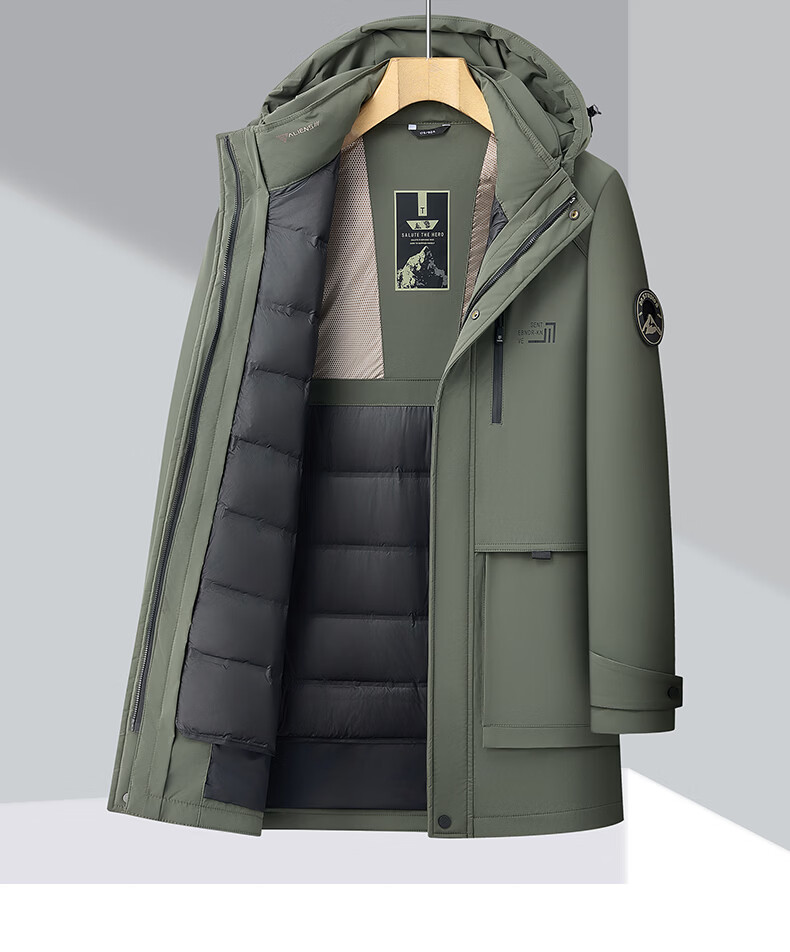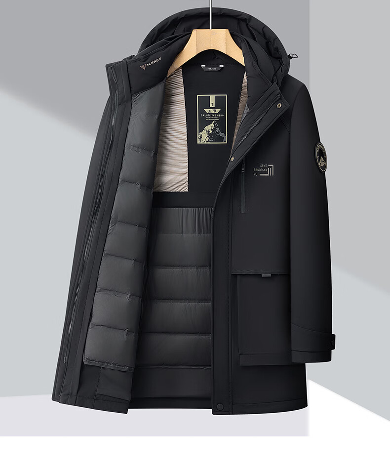 Hengyuanxiang Down Jacket Men's Medium Long Thick Jacket Liner Removable Winter Hooded Windproof Warm Jacket Black M