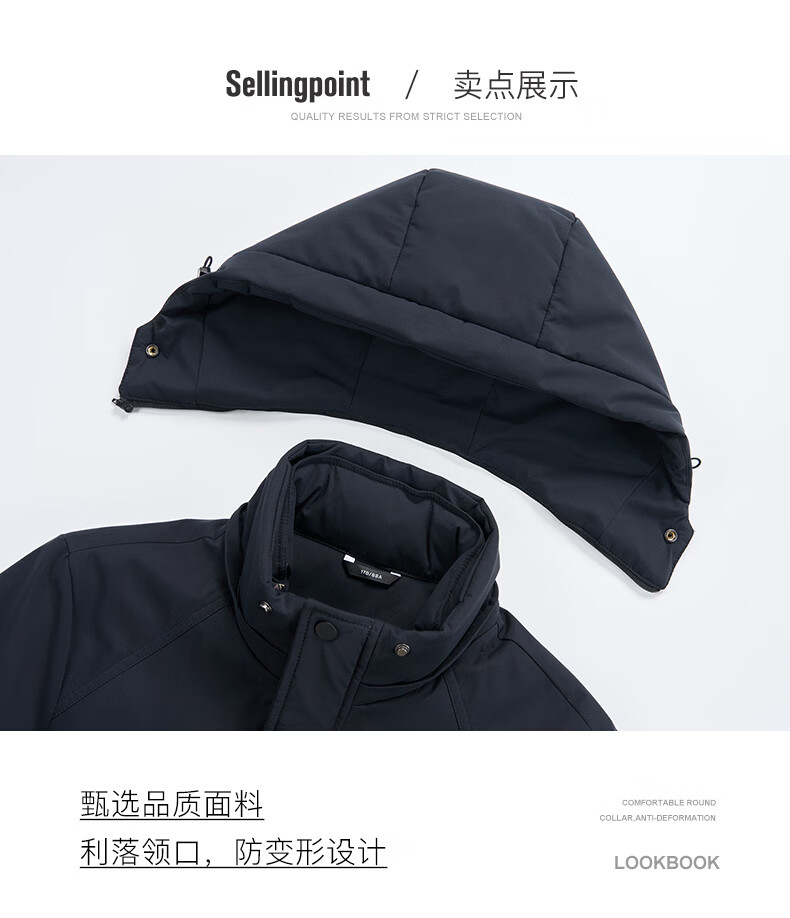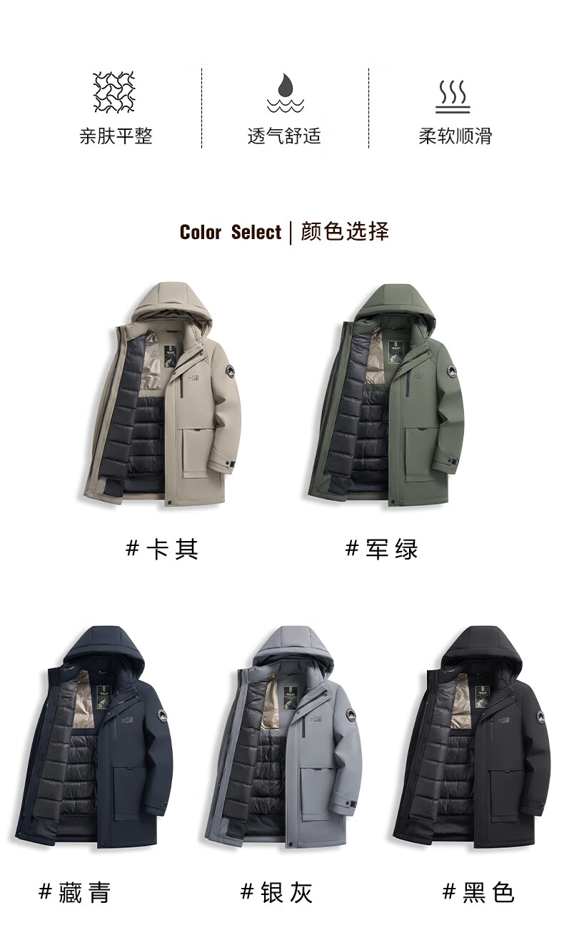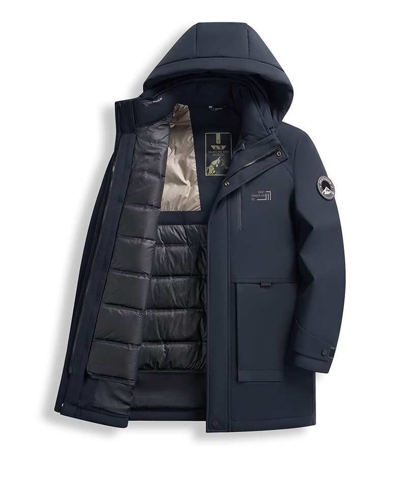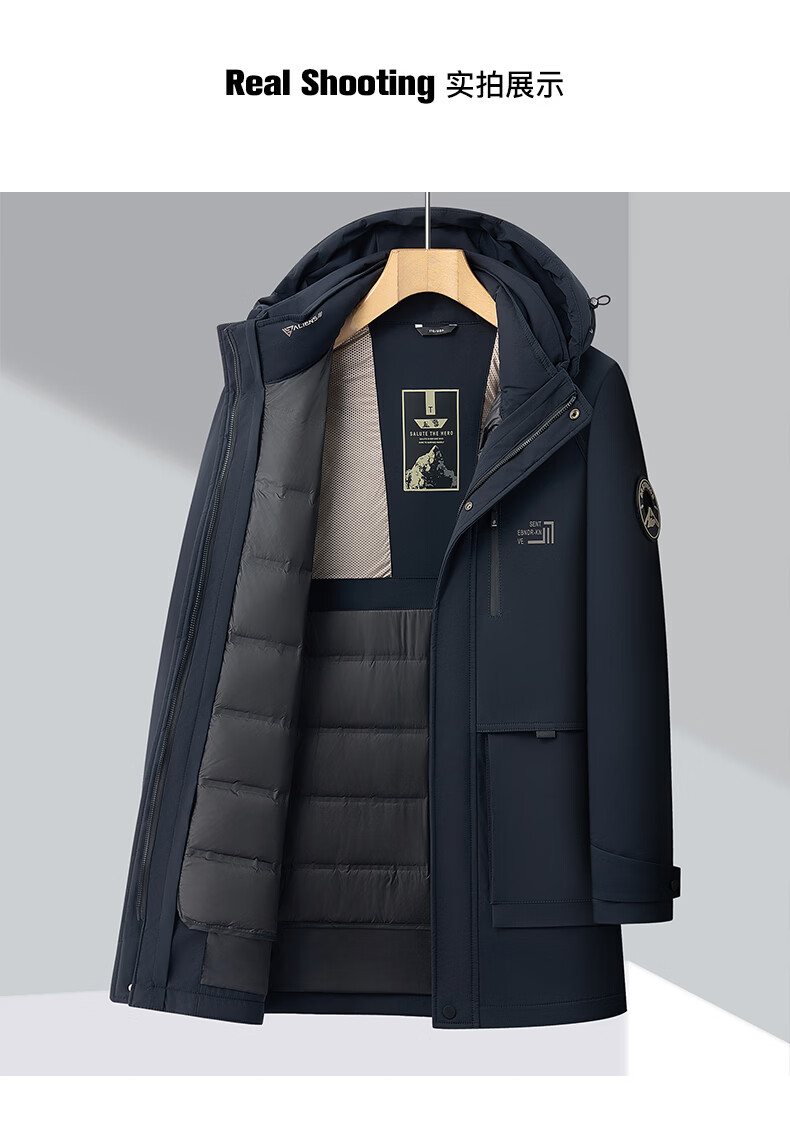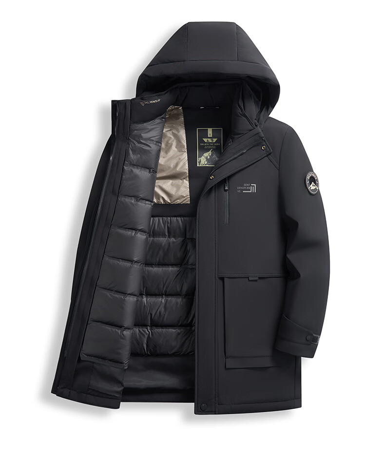 Hengyuanxiang Down Jacket Men's Medium Long Thick Jacket Liner Removable Winter Hooded Windproof Warm Jacket Black M