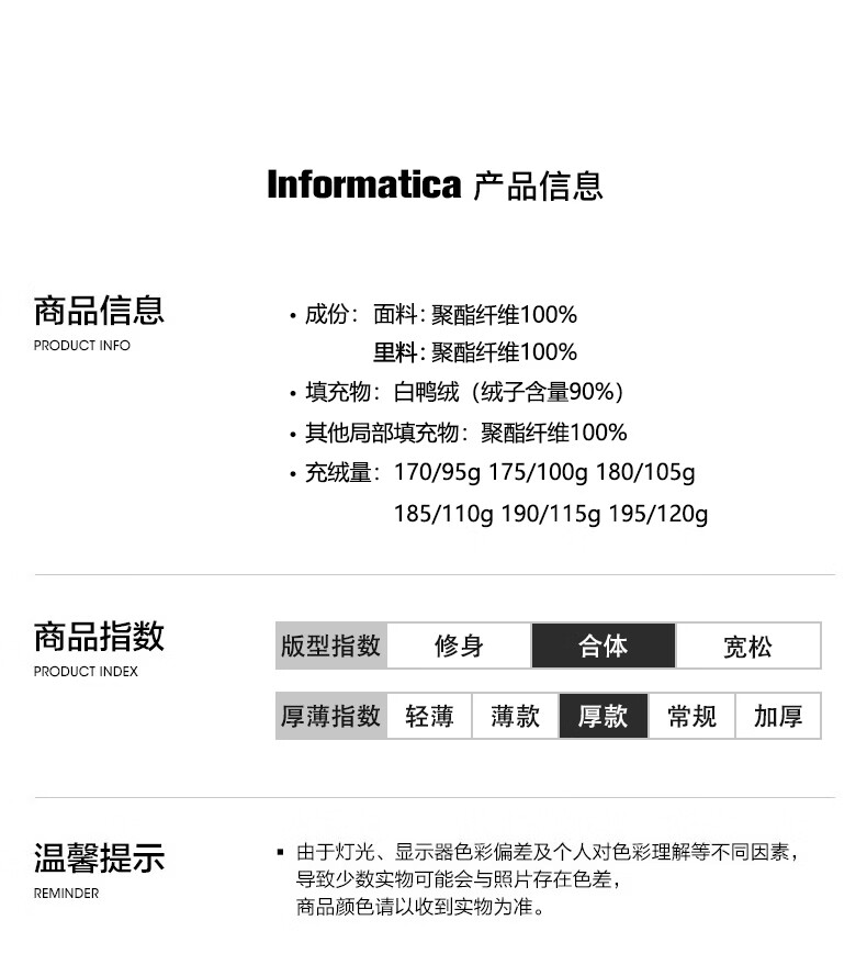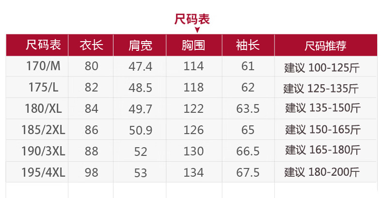 China (cm) 165 / 88-90 170 / 96-98 175 / 108-110 180 / 118-122 185 / 126-130