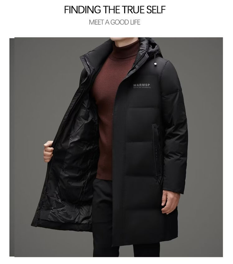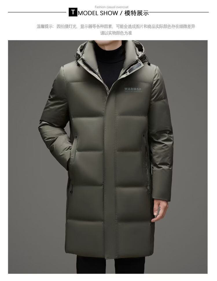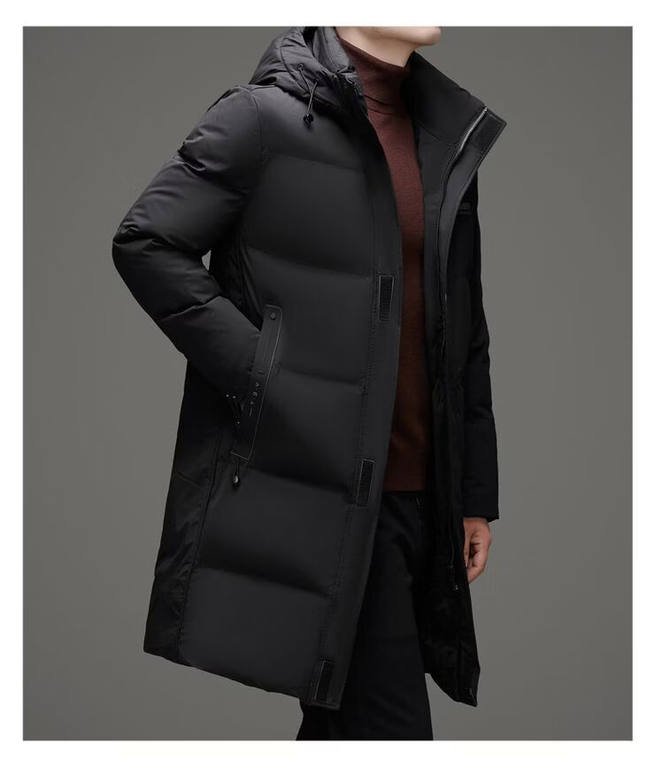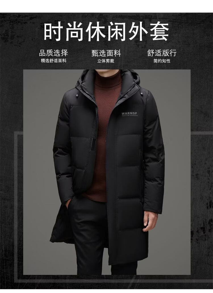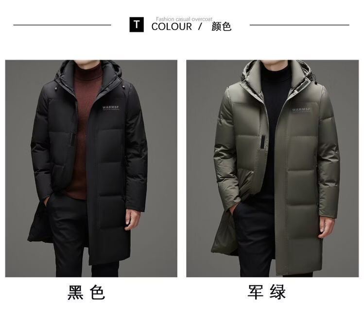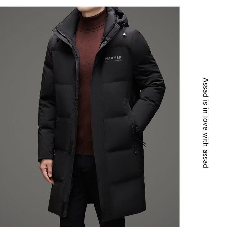 Hengyuanxiang long 2026 new men's down jacket over the knee cold protection thickened warm casual white duck down trendy jacket black M 170
