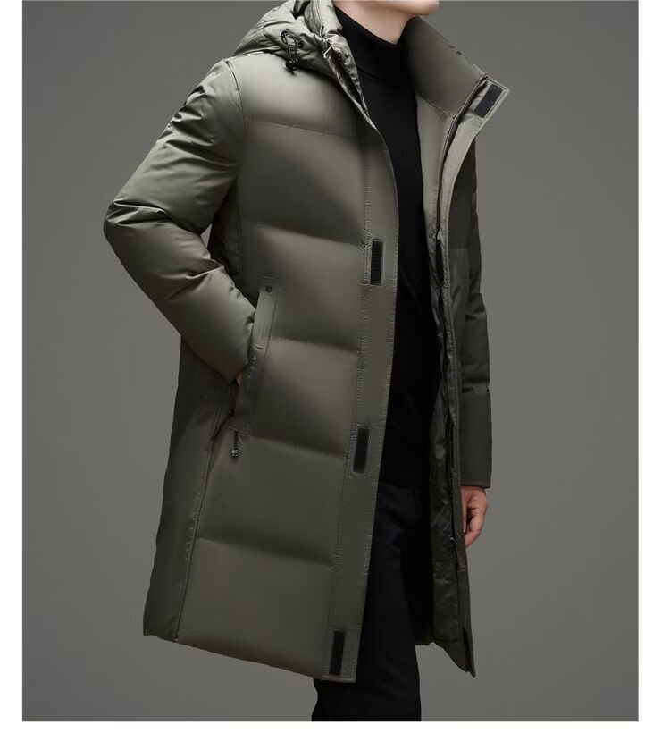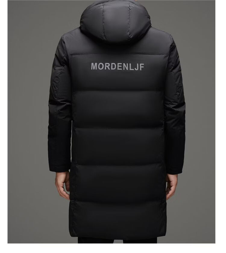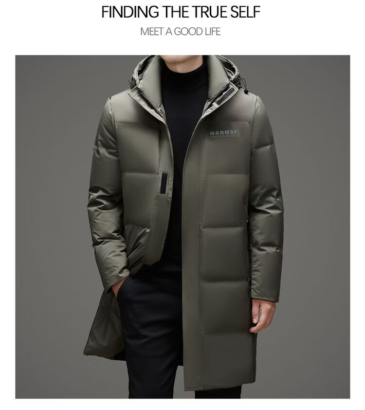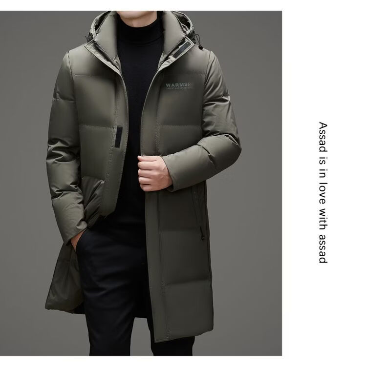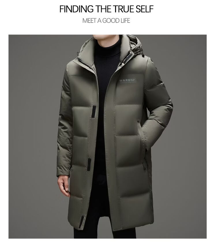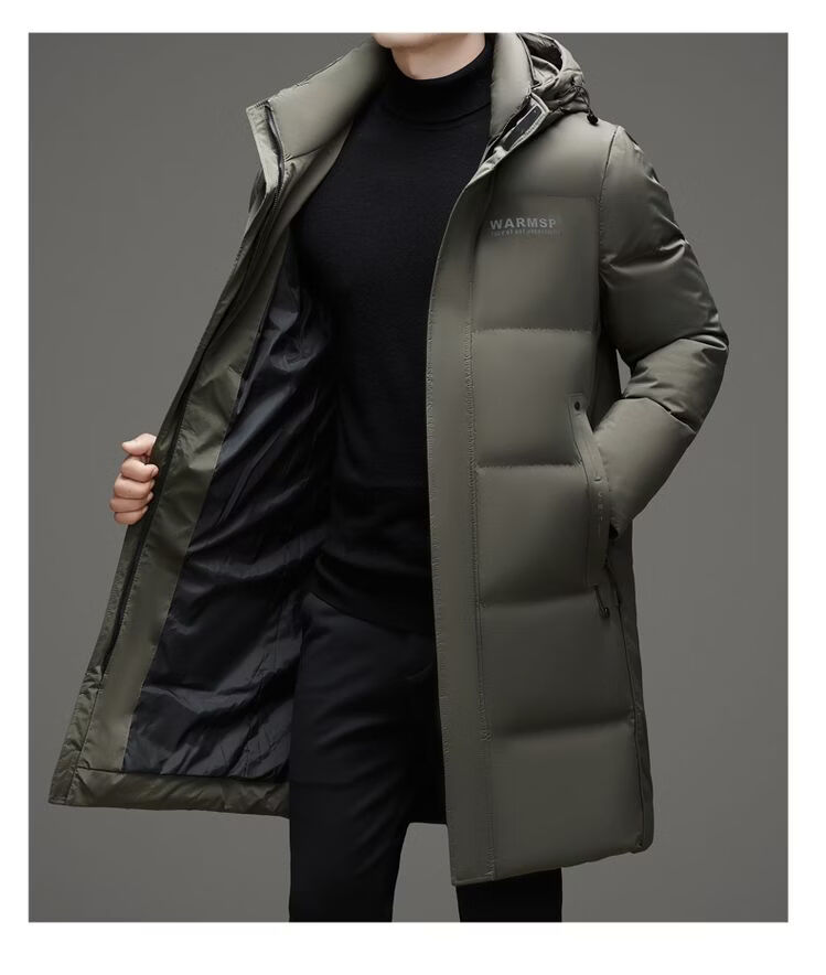 Hengyuanxiang long 2026 new men's down jacket over the knee cold protection thickened warm casual white duck down trendy jacket black M 170