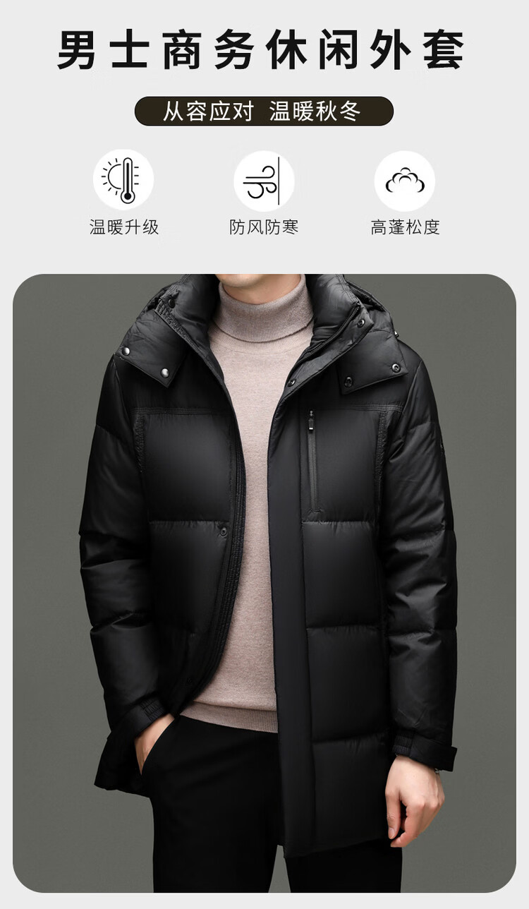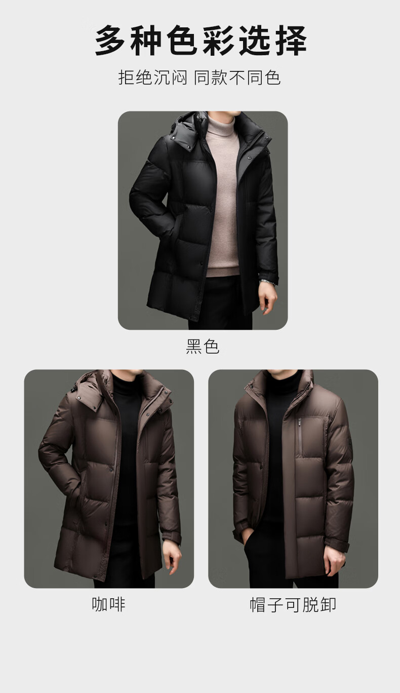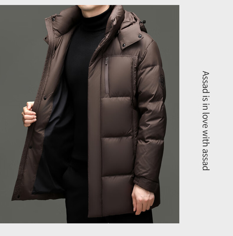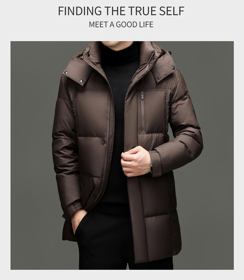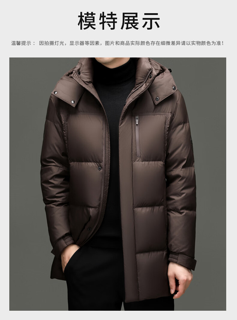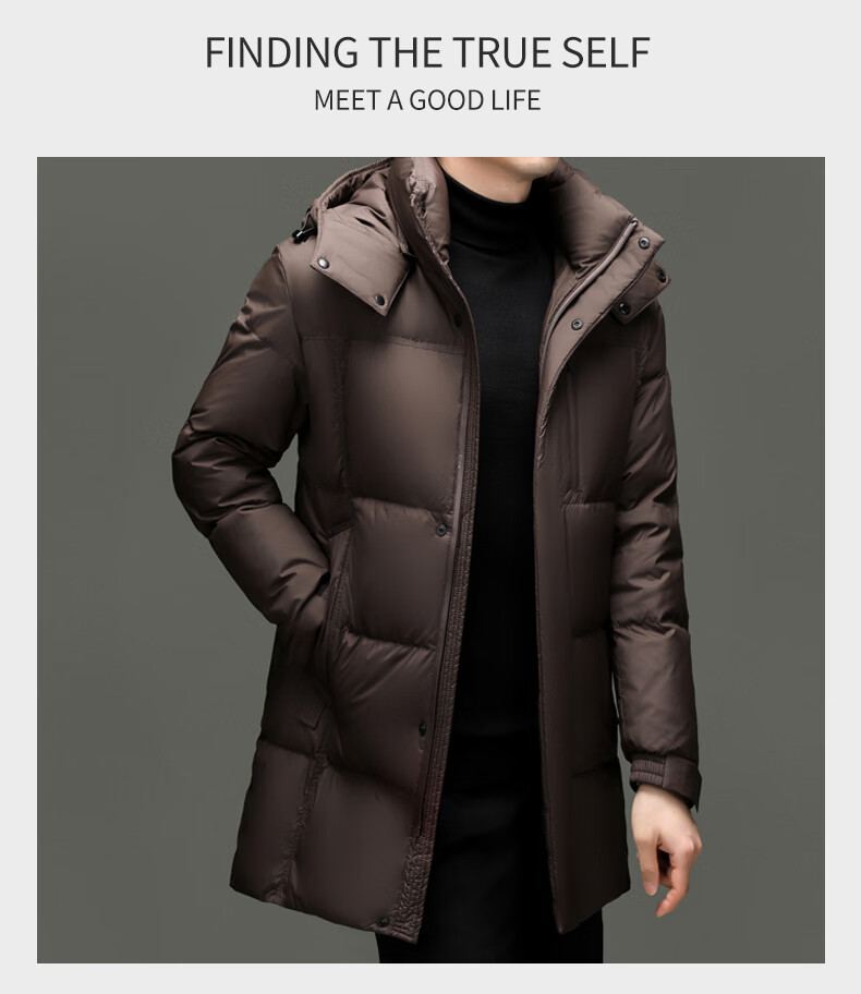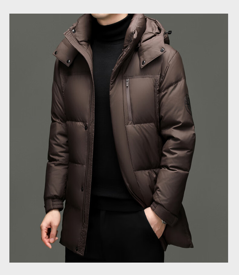 Hengyuanxiang Down Jacket Men's 2026 Winter White Duck Down Mid-Length High Filling Middle-aged Dad Men's Jacket Brown M 170