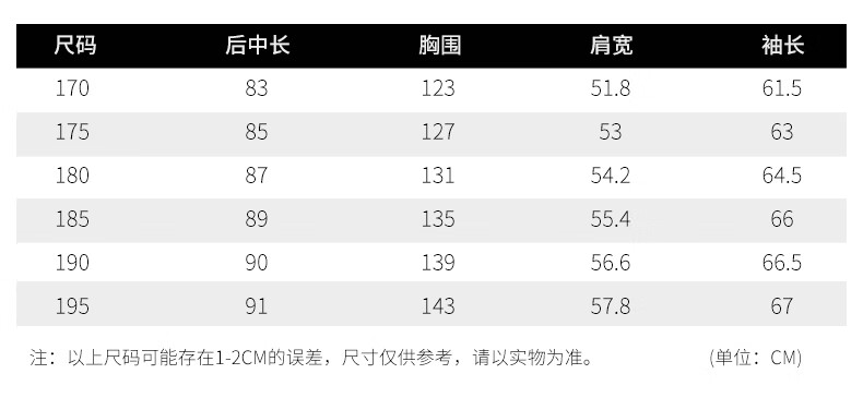 China (cm) 165 / 88-90 170 / 96-98 175 / 108-110 180 / 118-122 185 / 126-130