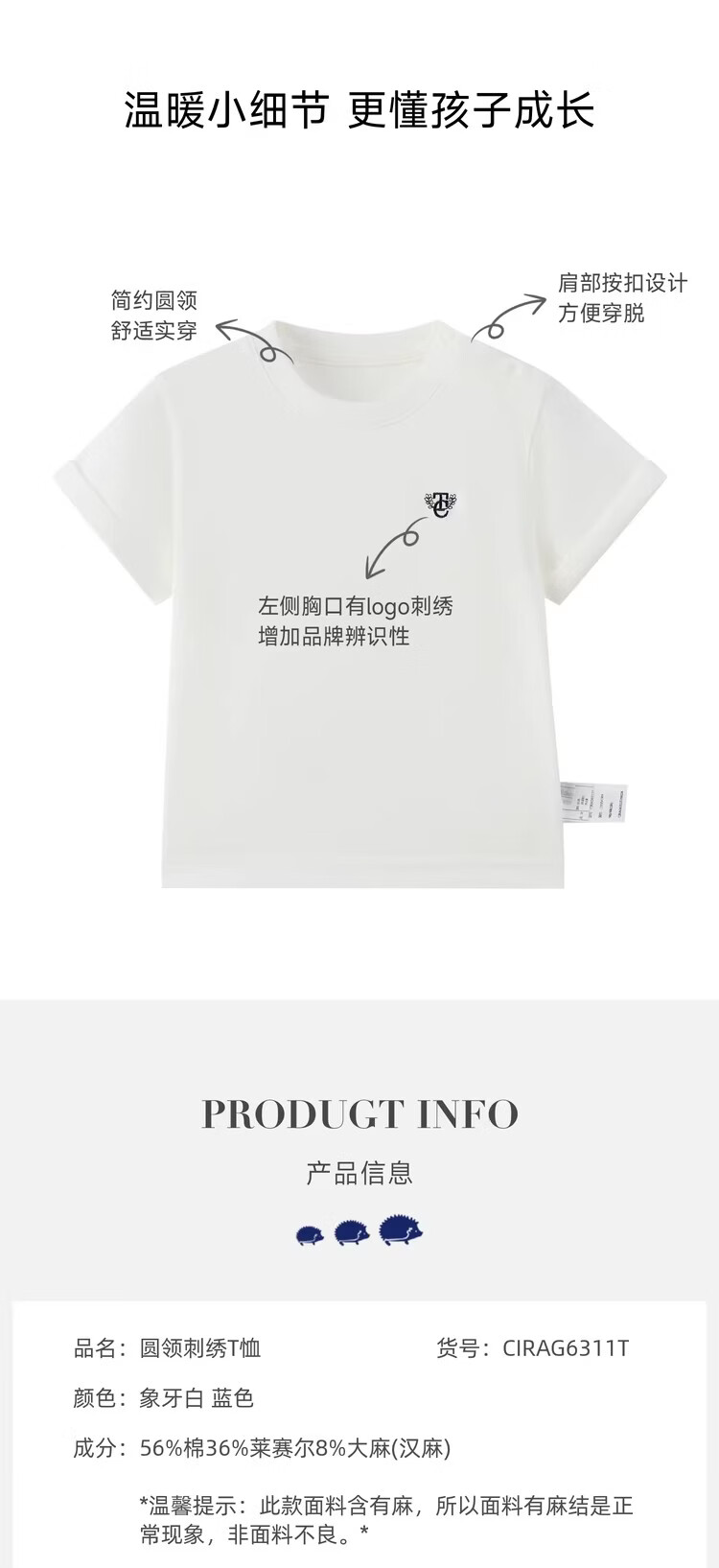 TARTINE ET CHOCOLAT French Chocolate Children's Clothing 26 Spring and Summer New Boys' Round Neck Embroidered T-Shirt Ivory White One Size 90/2A