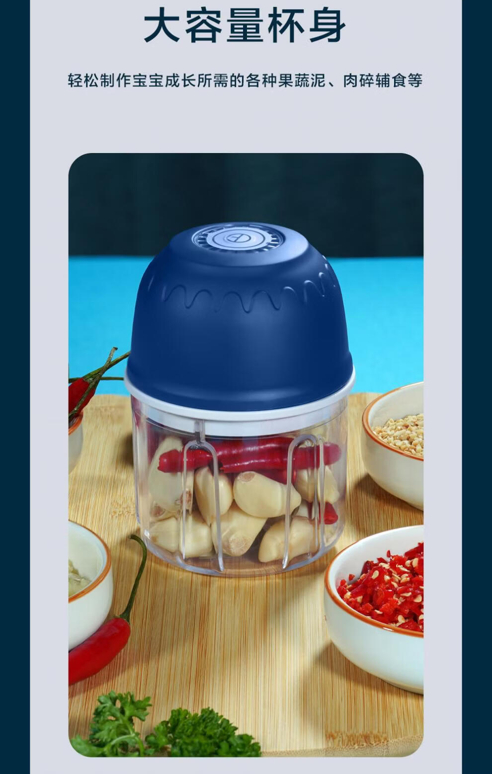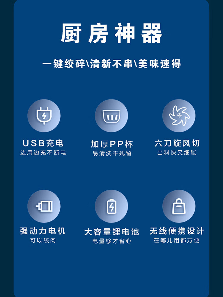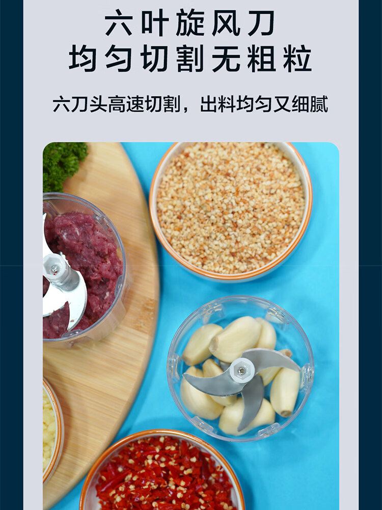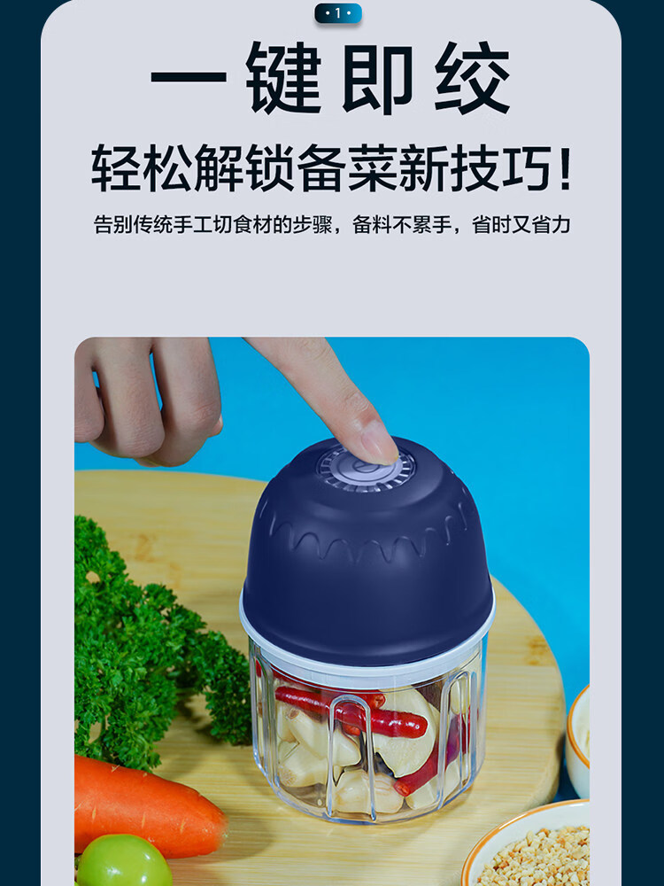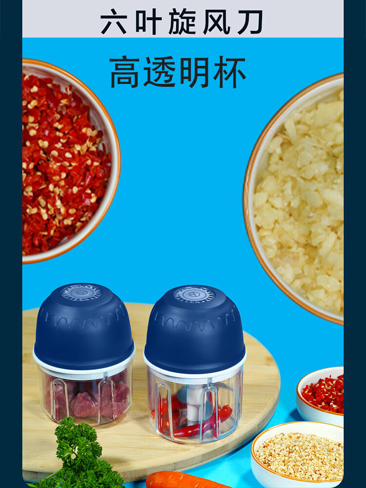 Tuojin garlic artifact electric garlic pounder household wireless garlic grinder garlic crusher garlic meat grinder light luxury blue + stainless steel three-leaf knife crushed garlic + crushed ginger 308ml