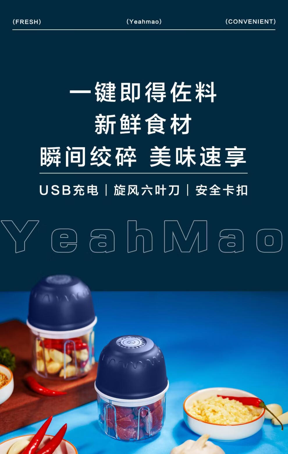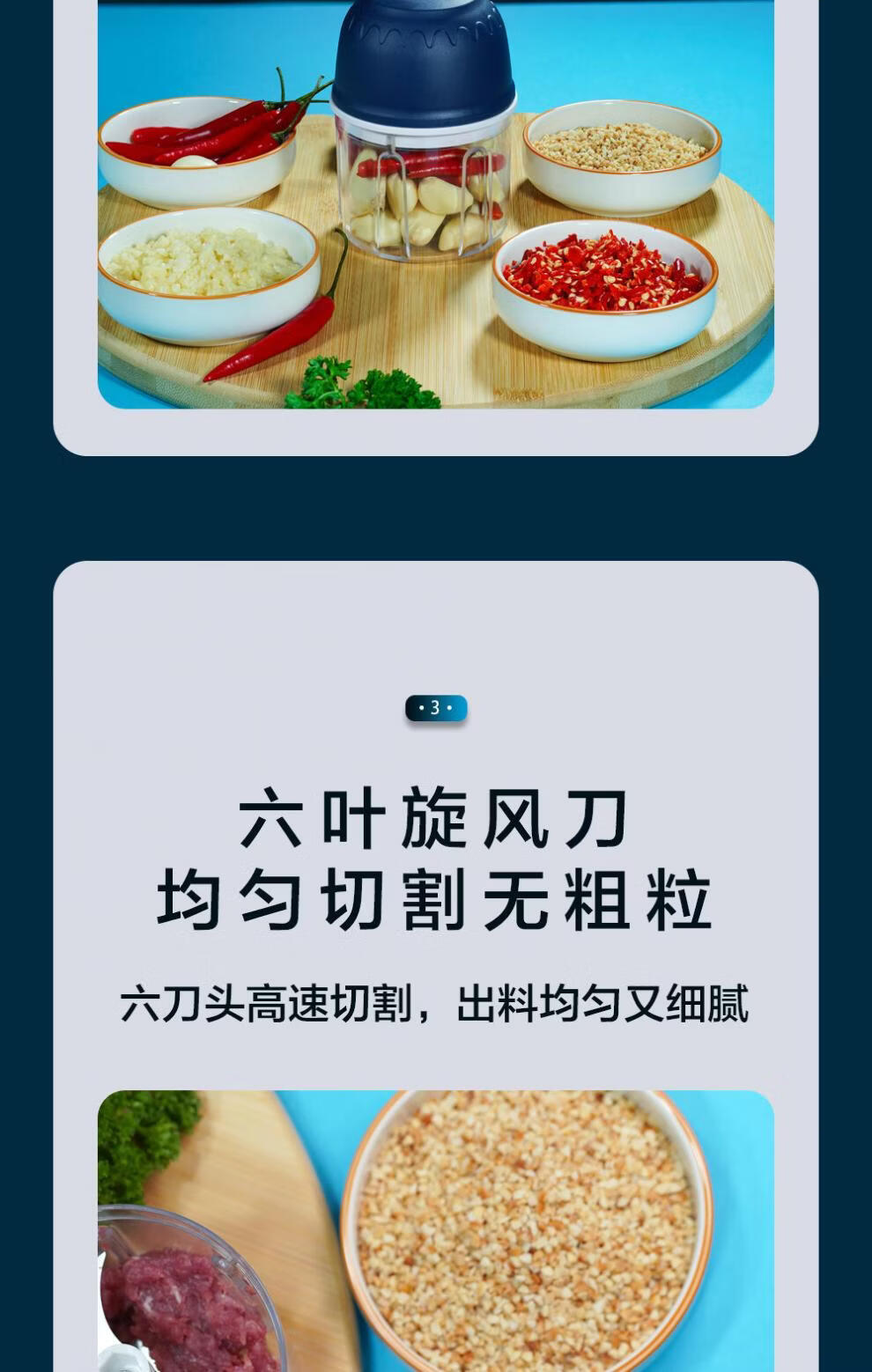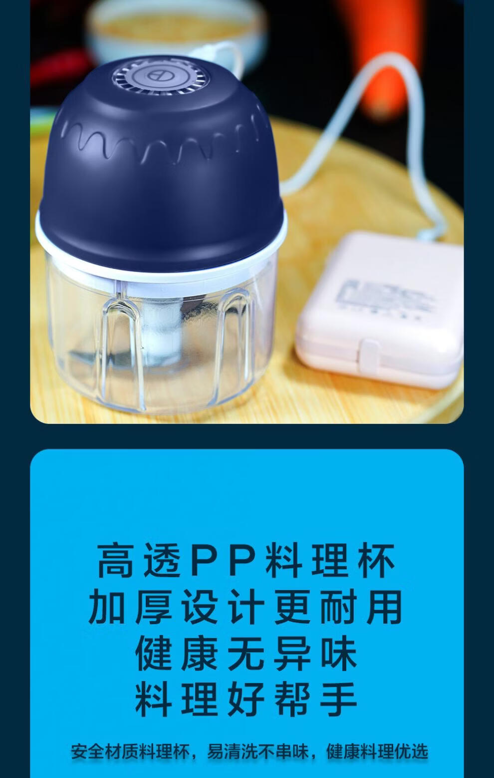 Tuojin garlic artifact electric garlic pounder household wireless garlic grinder garlic crusher garlic meat grinder light luxury blue + stainless steel three-leaf knife crushed garlic + crushed ginger 308ml