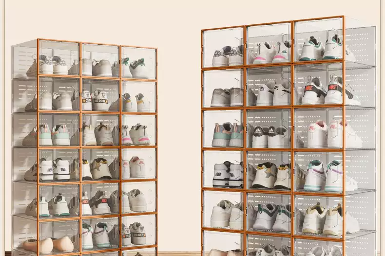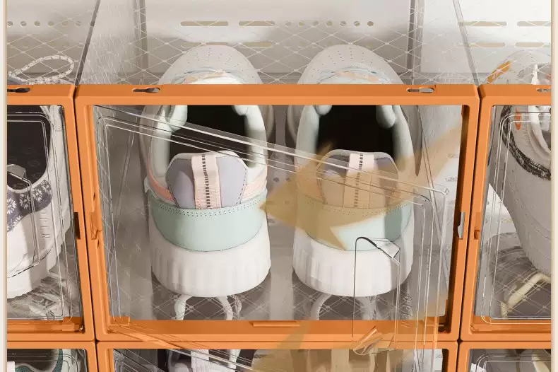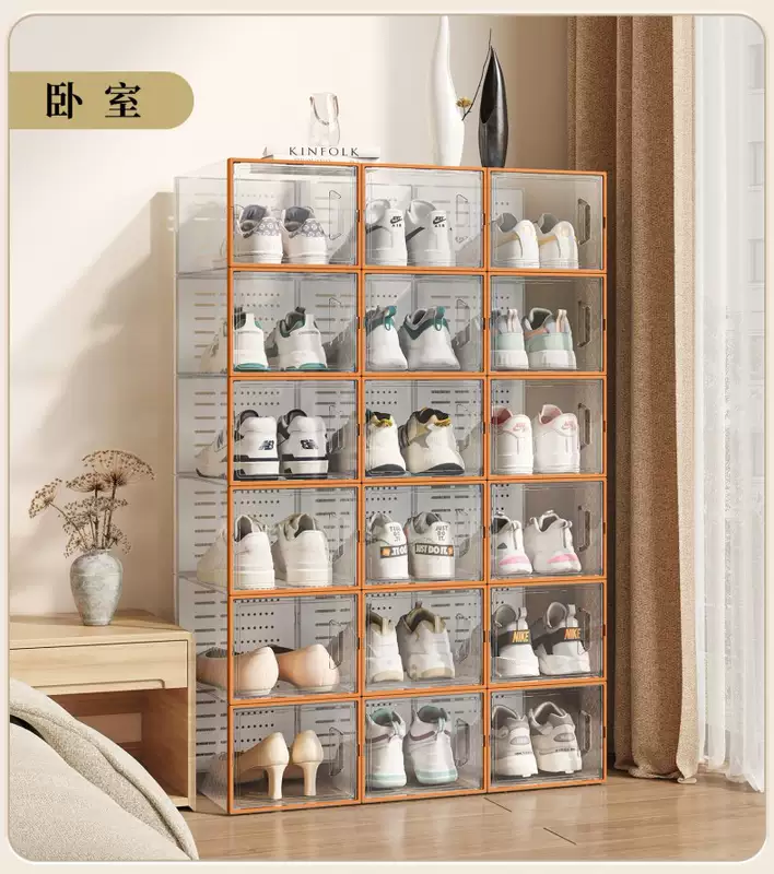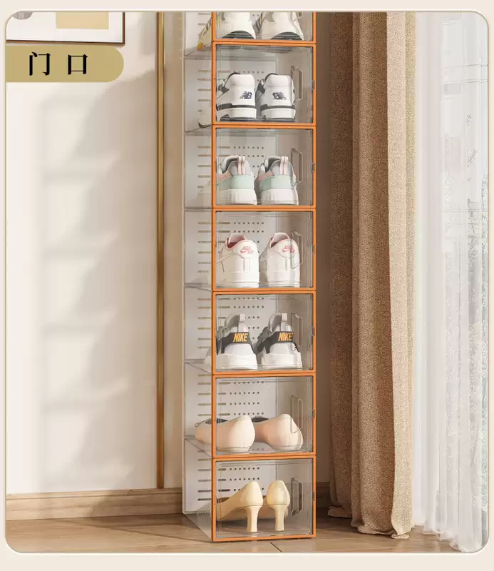 Yusenyi transparent shoe box storage box, side-opening shoe storage artifact, space-saving plastic shoe cabinet, household dust-proof shoe rack, thickened (hard back cover has stronger load-bearing capacity), upgraded to large size, can be loaded within 44 yards, Mango Orange, buy 5 and get 5 free