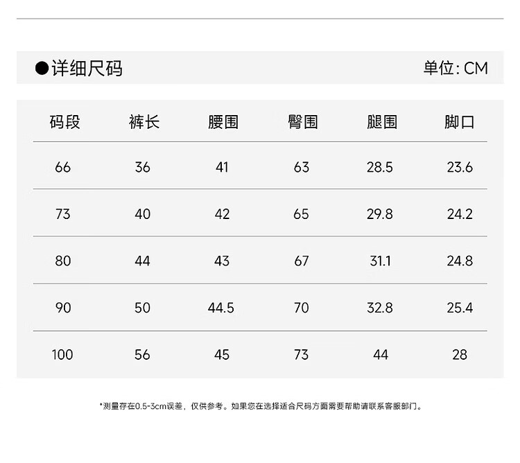 Outseam (cm) 99 cm 101.5 cm 104 cm 106.5 cm 109 cm