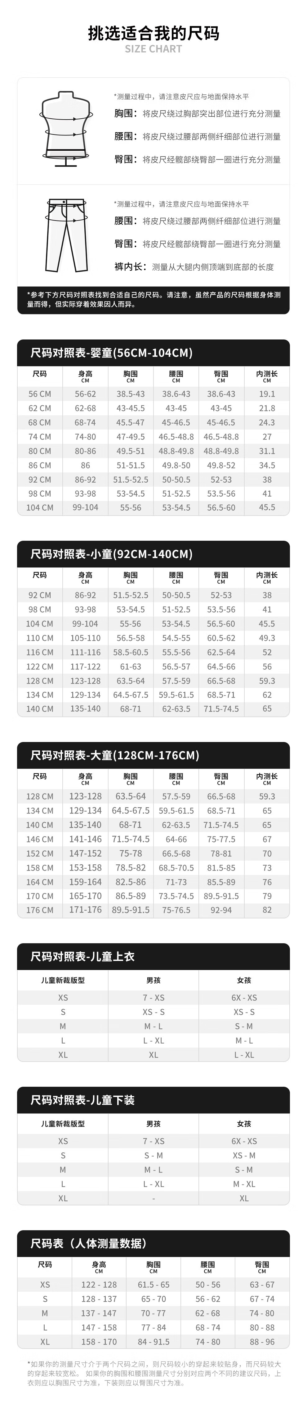 China (cm) 160-165/84-86 165-170 / 88-90 167-172 / 92-96 168-173 / 98-102 170-176 / 106-110