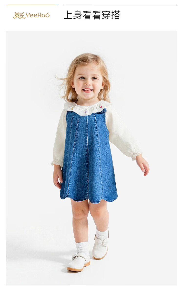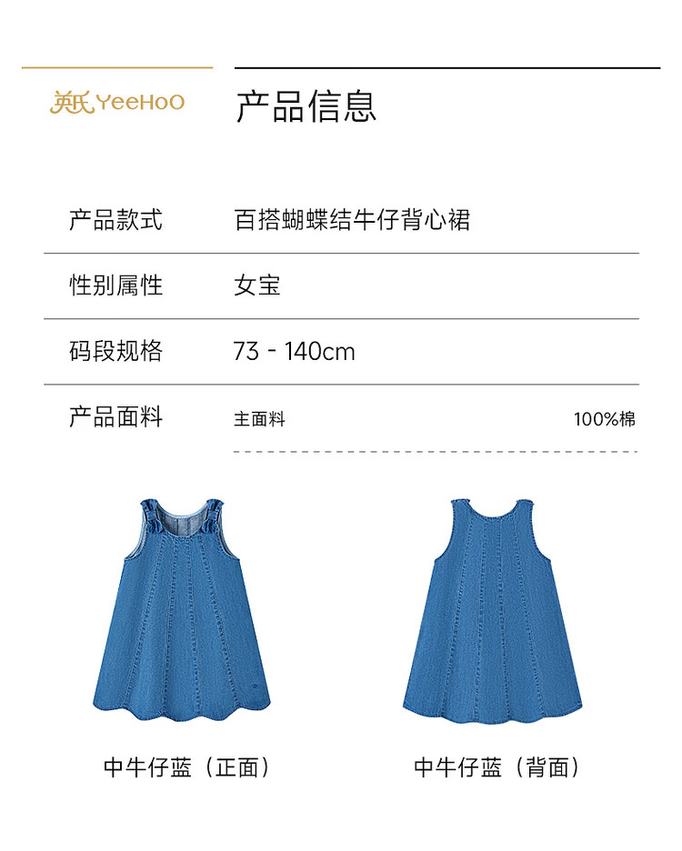 YEEHOO shopping mall children's clothing girls' denim dress pure cotton tank top summer new children's skirt YRLFJ1S006A medium denim blue pure cotton YRLFJ1S006A 80 cm