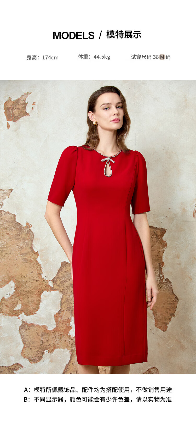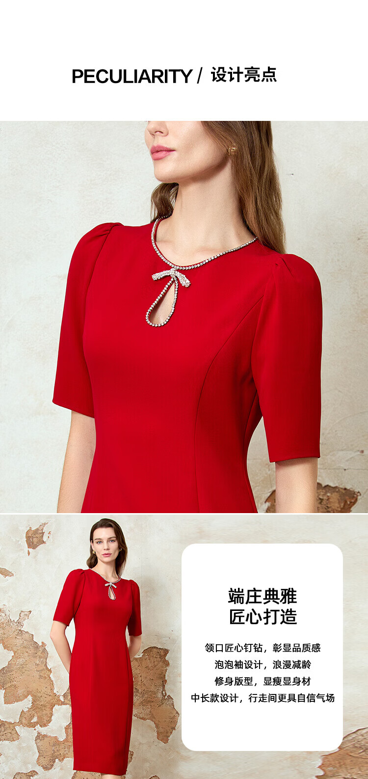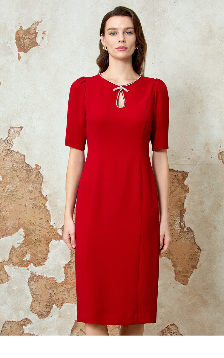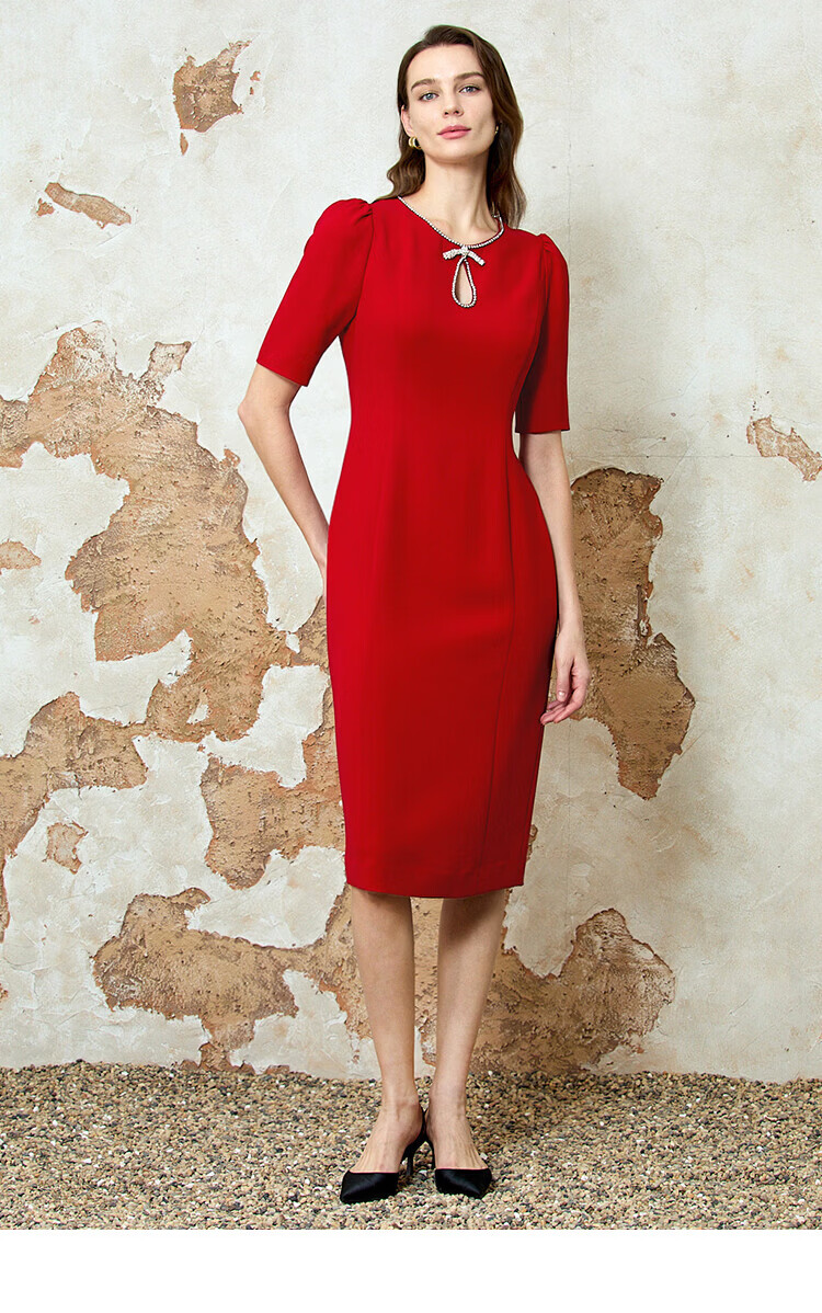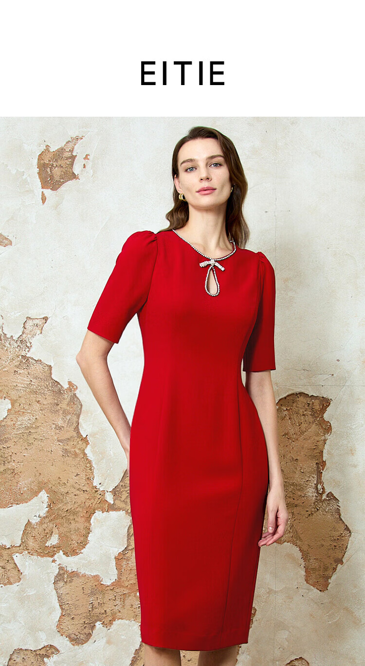 EITIE dignified and elegant water drop collar banquet evening dress 2026 spring new temperament Qiji red dress 8177803 Pompeii Red 61 S (155)