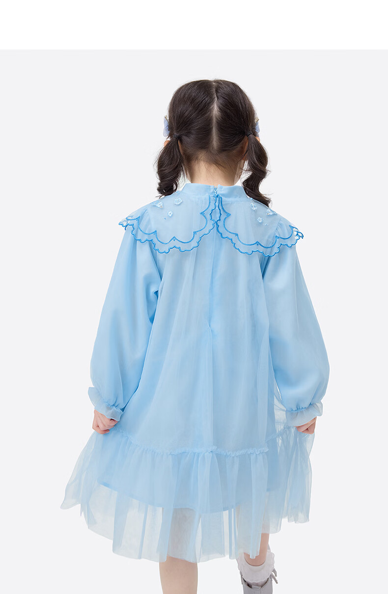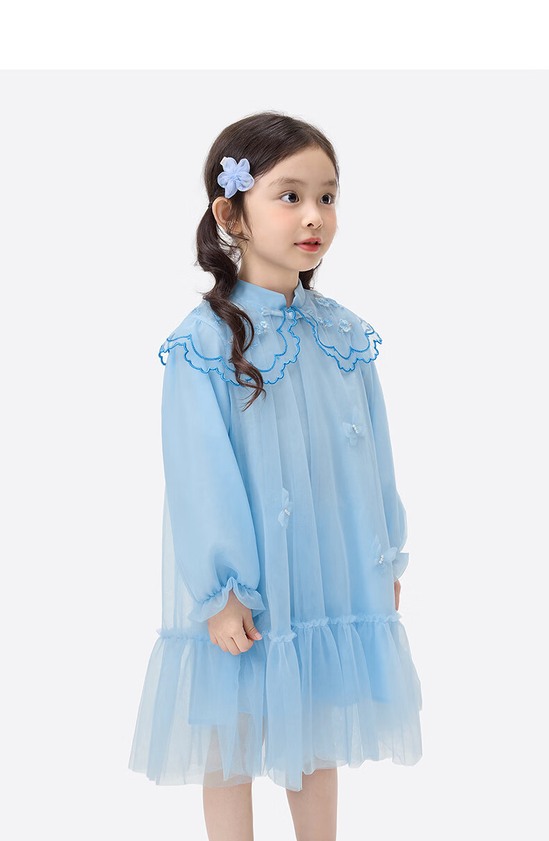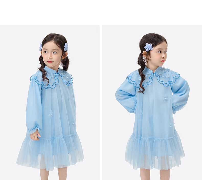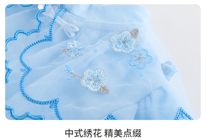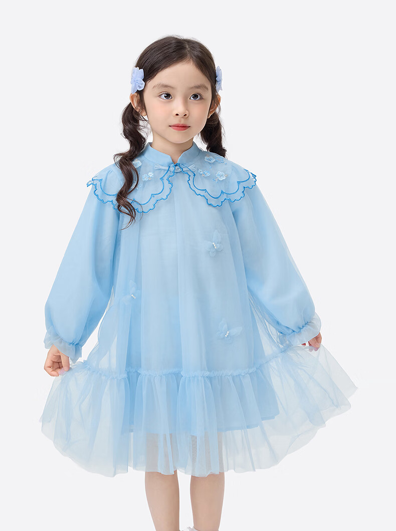 Xiaoyinman children's clothing girls' new Chinese style dress with button stand collar 26 spring Chinese style mesh skirt for children and middle-aged children blue 105