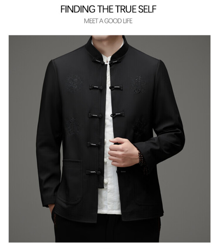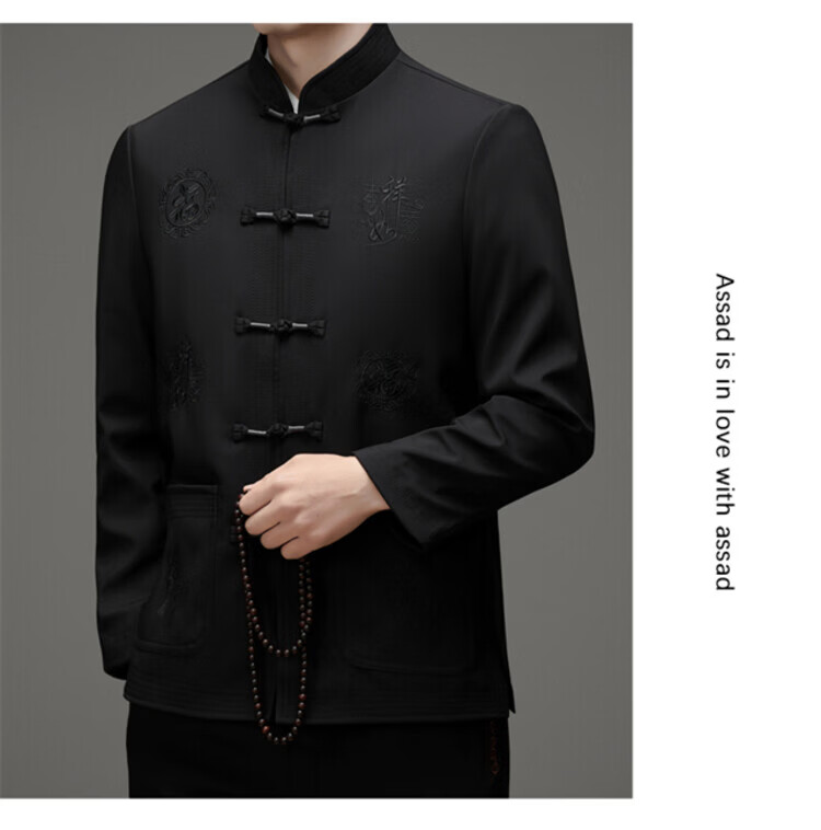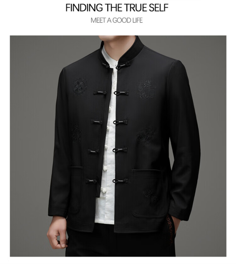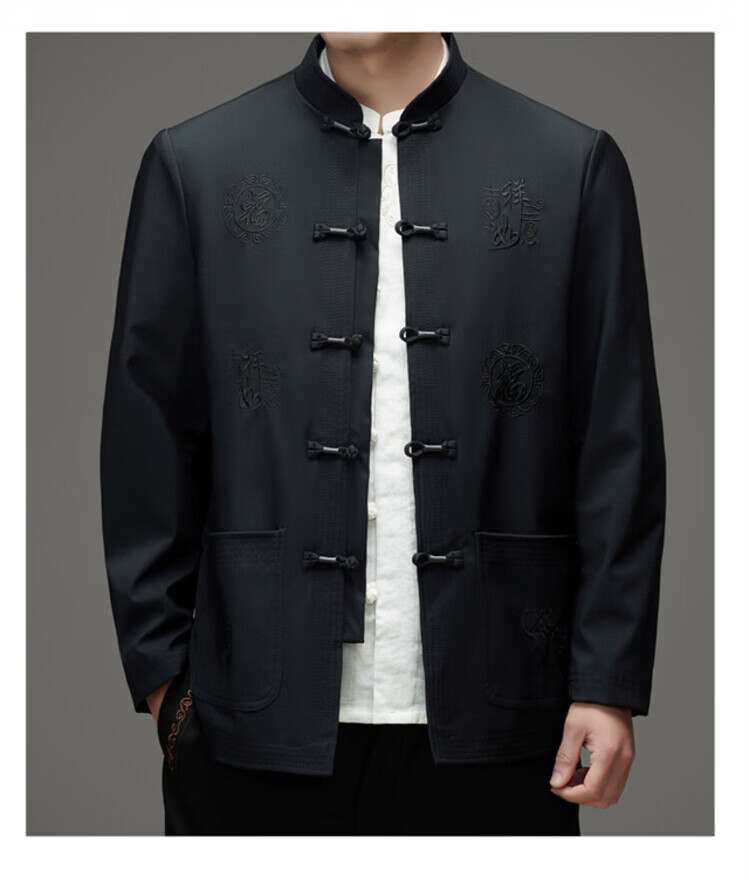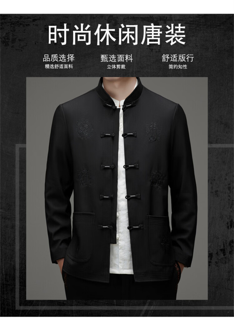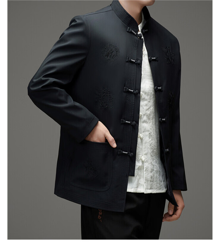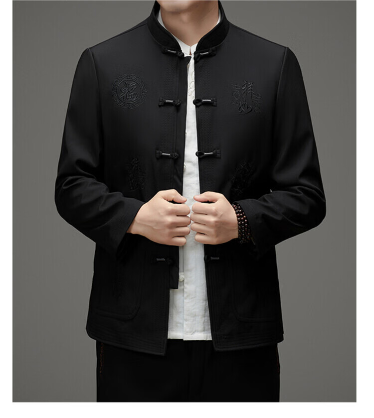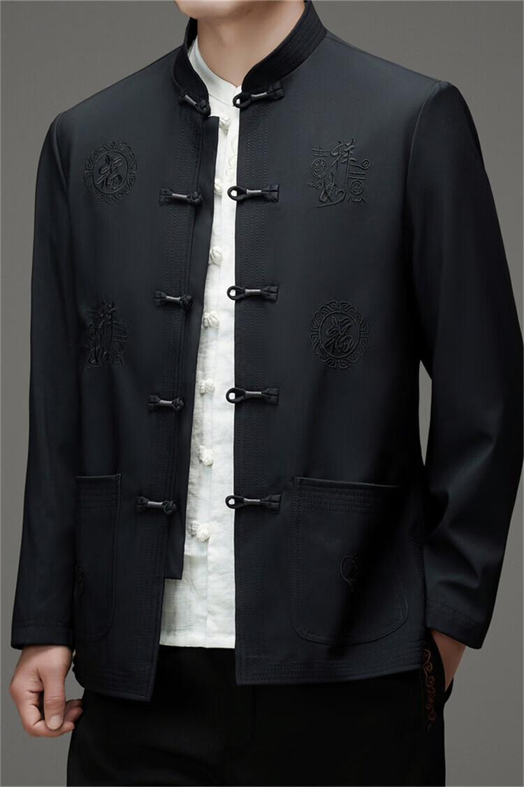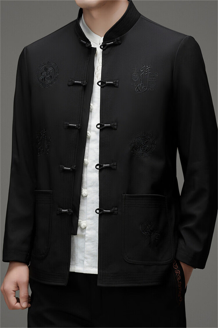 Hengyuanxiang Tang suit men's embroidery middle-aged and elderly long-sleeved dad suit jacket Chinese style men's Chinese layman suit black 2XL 185