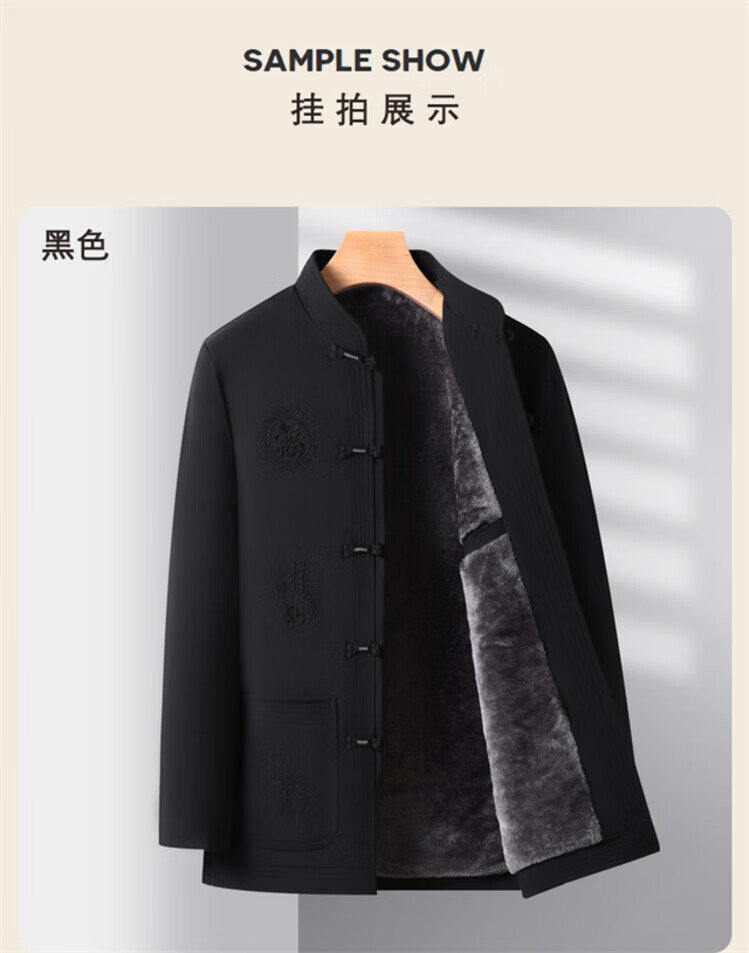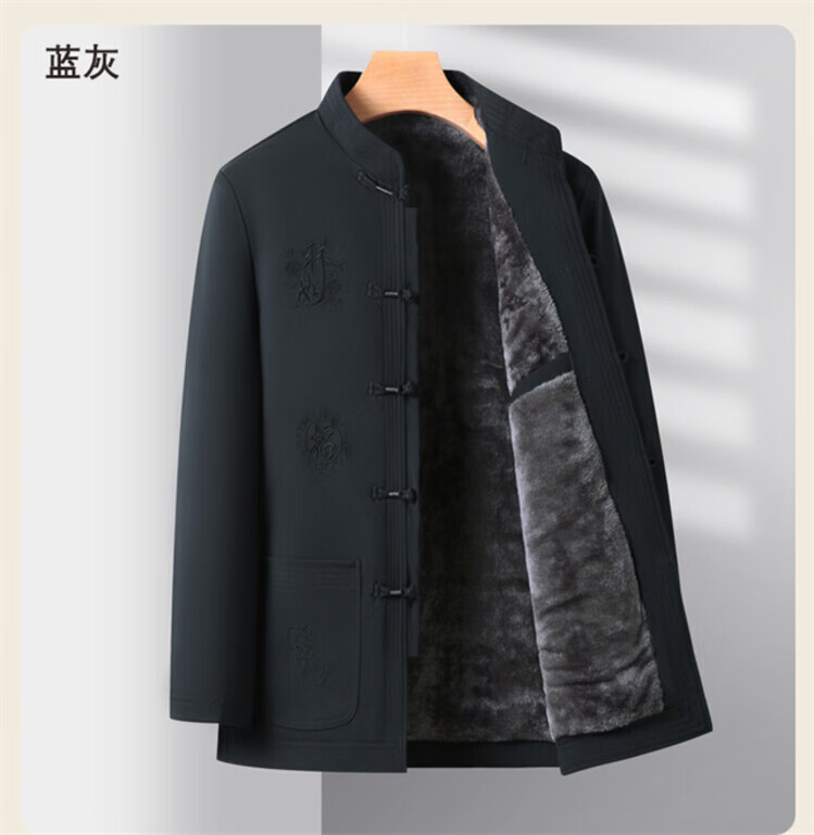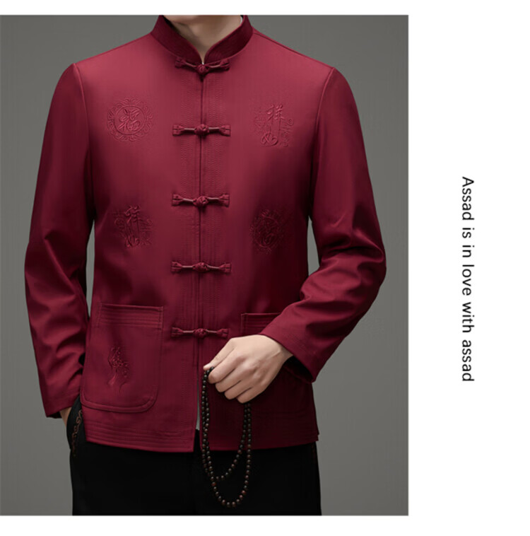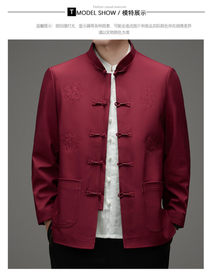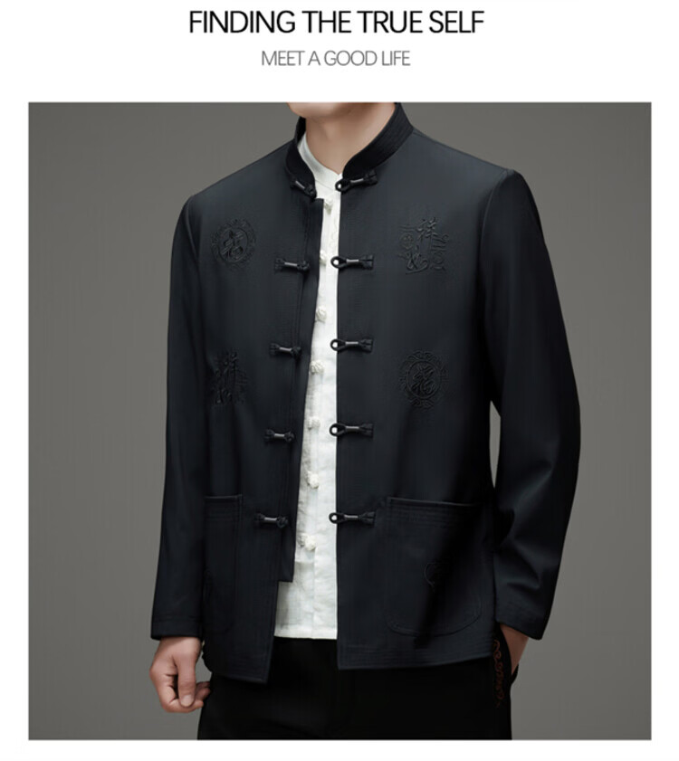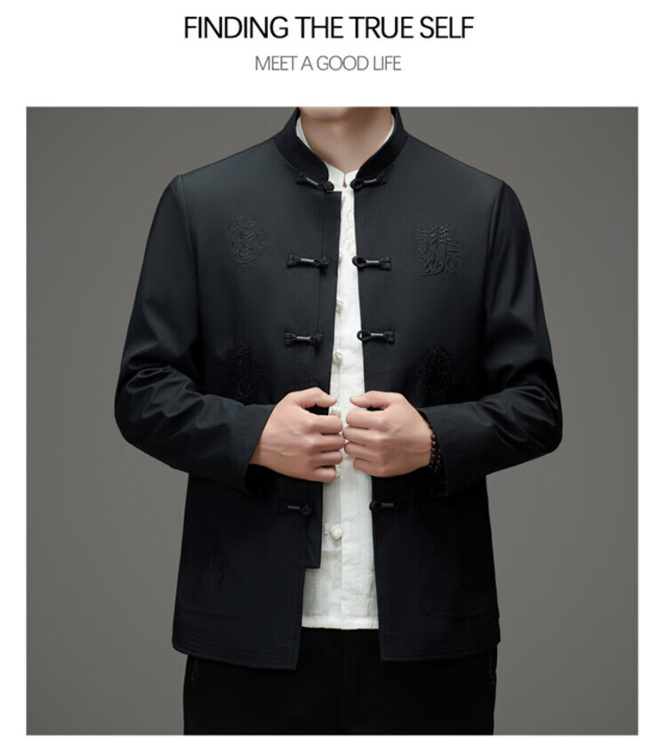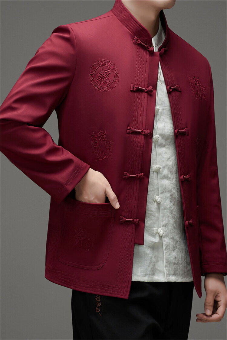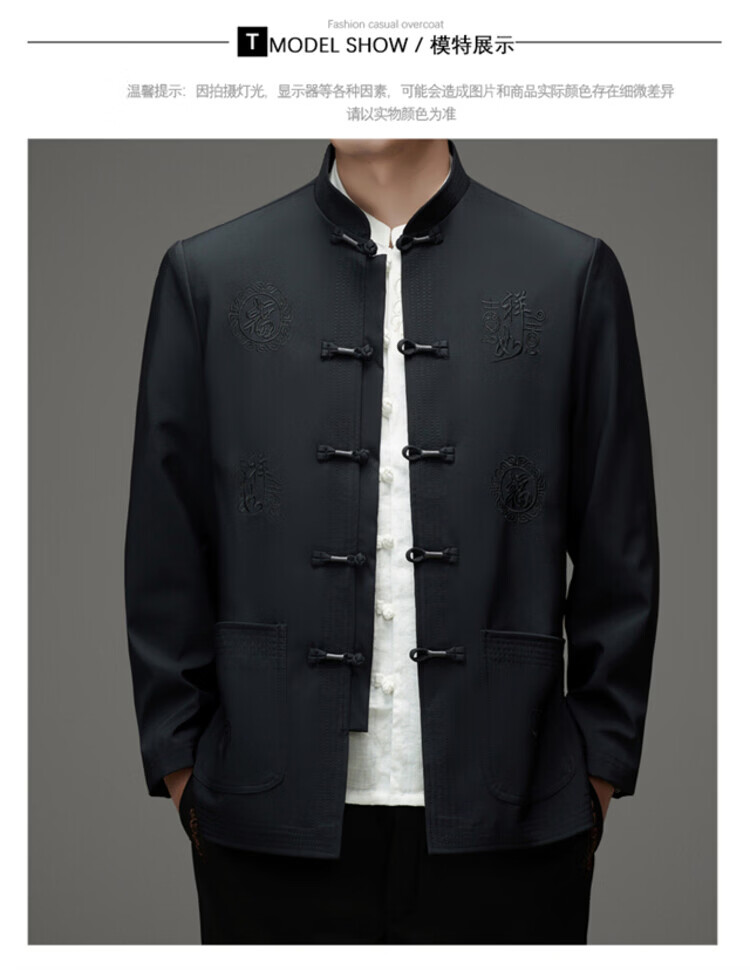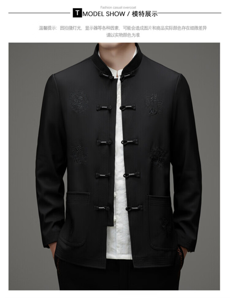 Hengyuanxiang Tang suit men's embroidery middle-aged and elderly long-sleeved dad suit jacket Chinese style men's Chinese layman suit black 2XL 185
