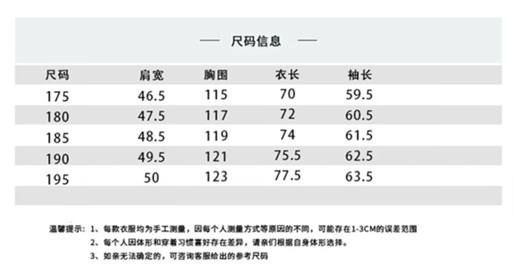 China (cm) 165 / 88-90 170 / 96-98 175 / 108-110 180 / 118-122 185 / 126-130
