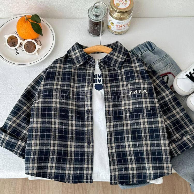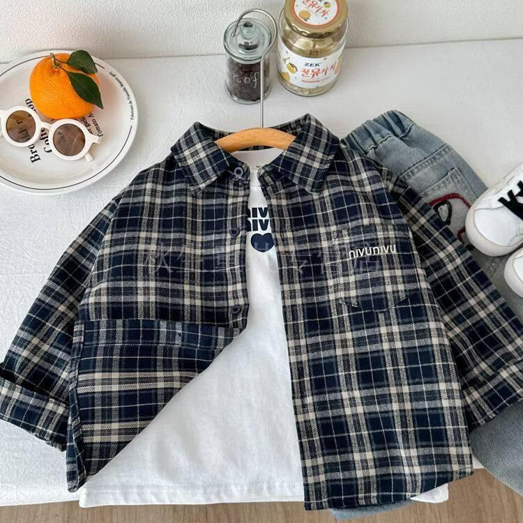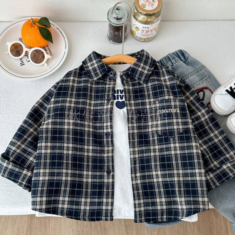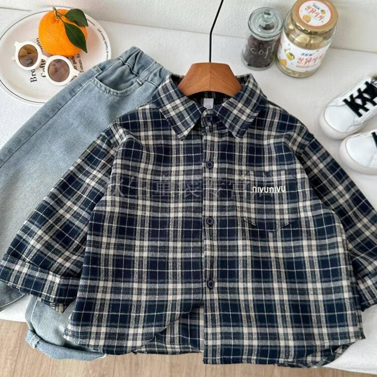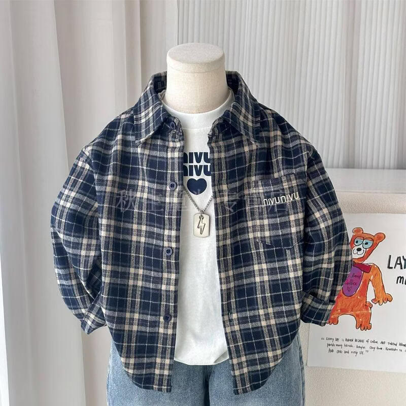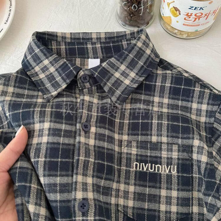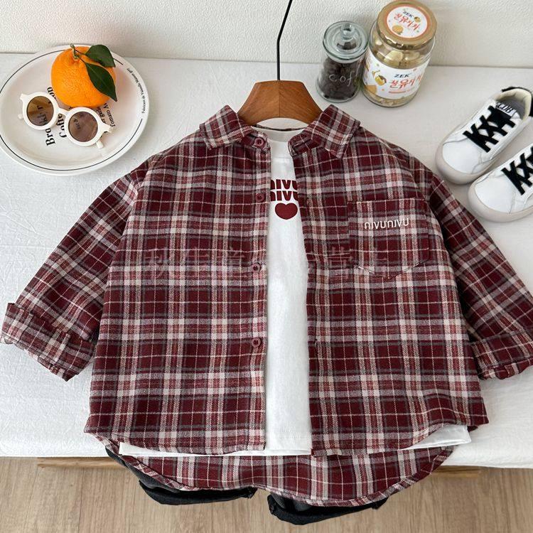 G.duck Korean style boys' brushed plaid shirt, handsome college style spring girl's thin long-sleeved jacket, fashionable red plaid shirt, same style for men and women 110 cm