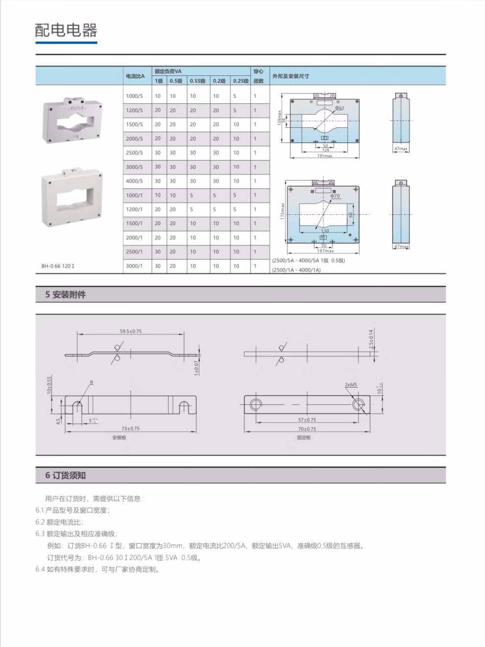 High-precision current transformer BH-0.66 100/150/200/300/400/600/5 0.2S level BH-0.66 75/5 0.2S level 100 copper bar hole diameter 100mm