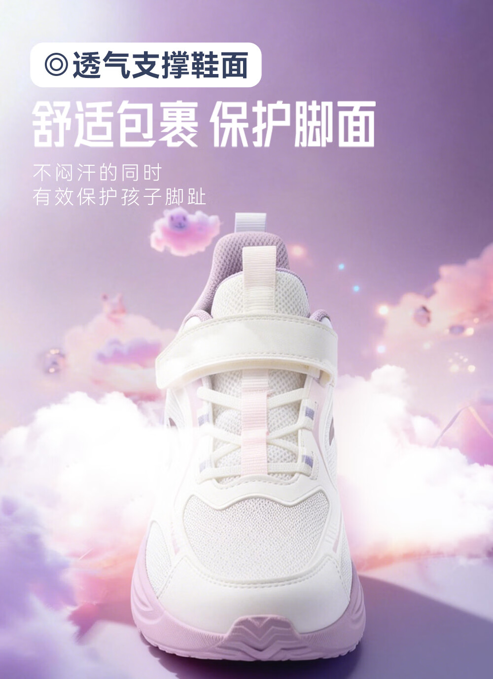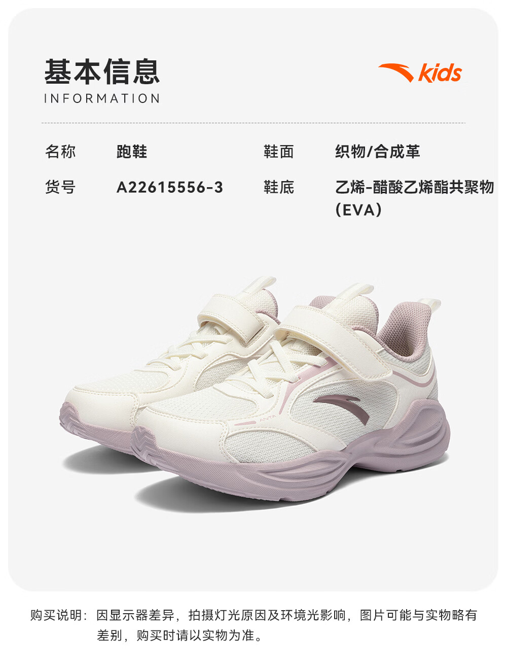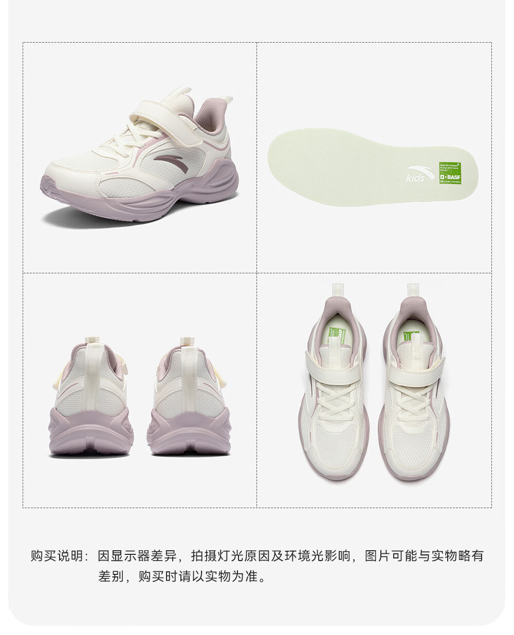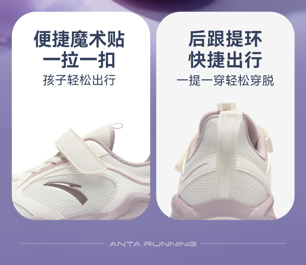 ANTA (ANTA) Children's Linfeng Running Shoes Girls' Sports Shoes 26 Spring Densified Mesh Velcro Lightweight Breathable Student Ivory White-1 28