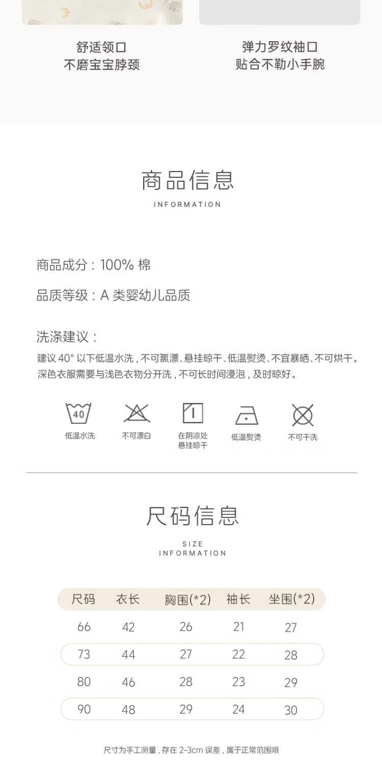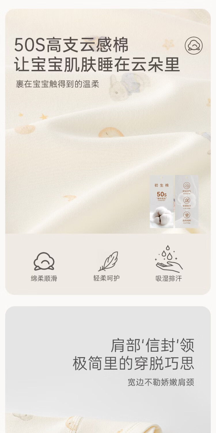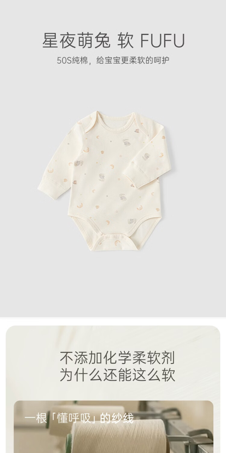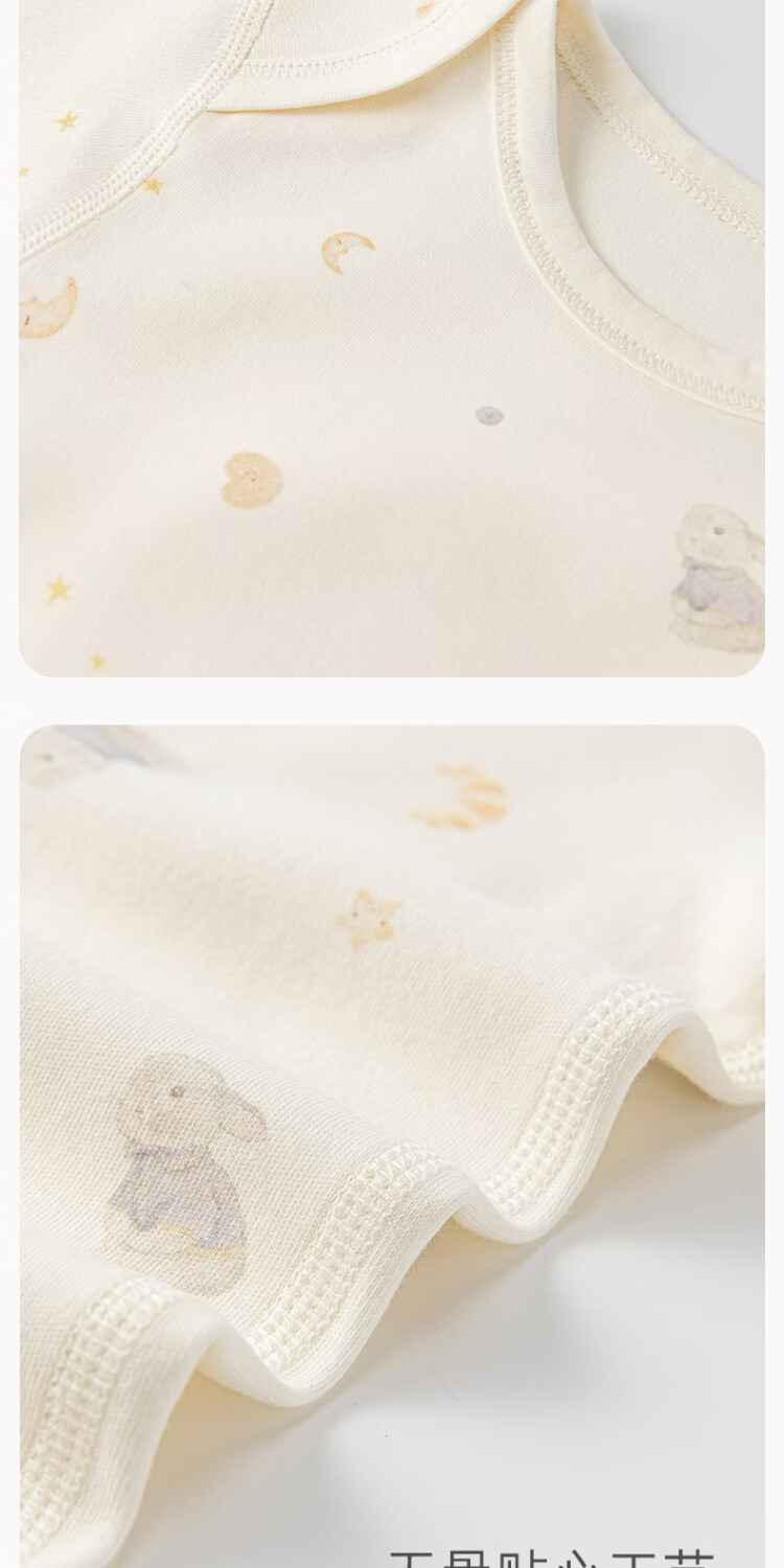 Musheng cotton Yungan cotton infant long-sleeved jumpsuit spring and autumn baby pure cotton boneless triangle vest home crawling suit Rabbit cake 66cm
