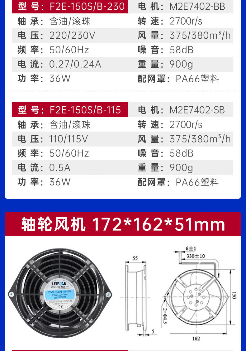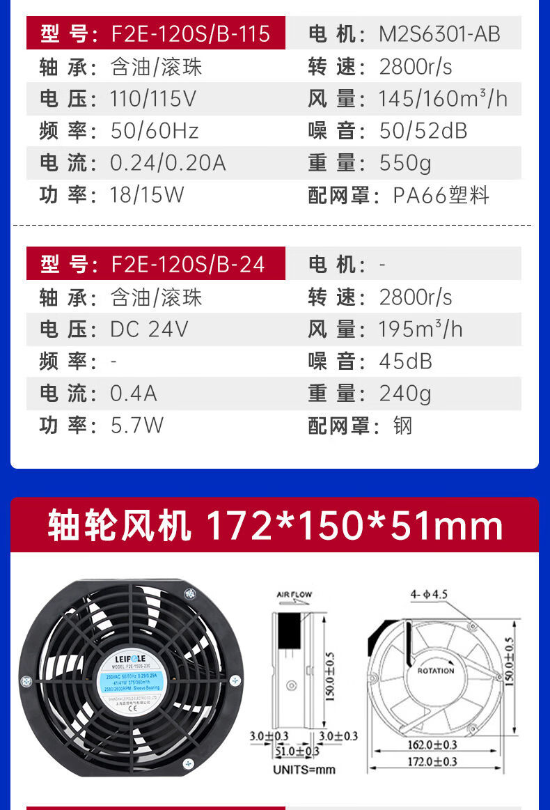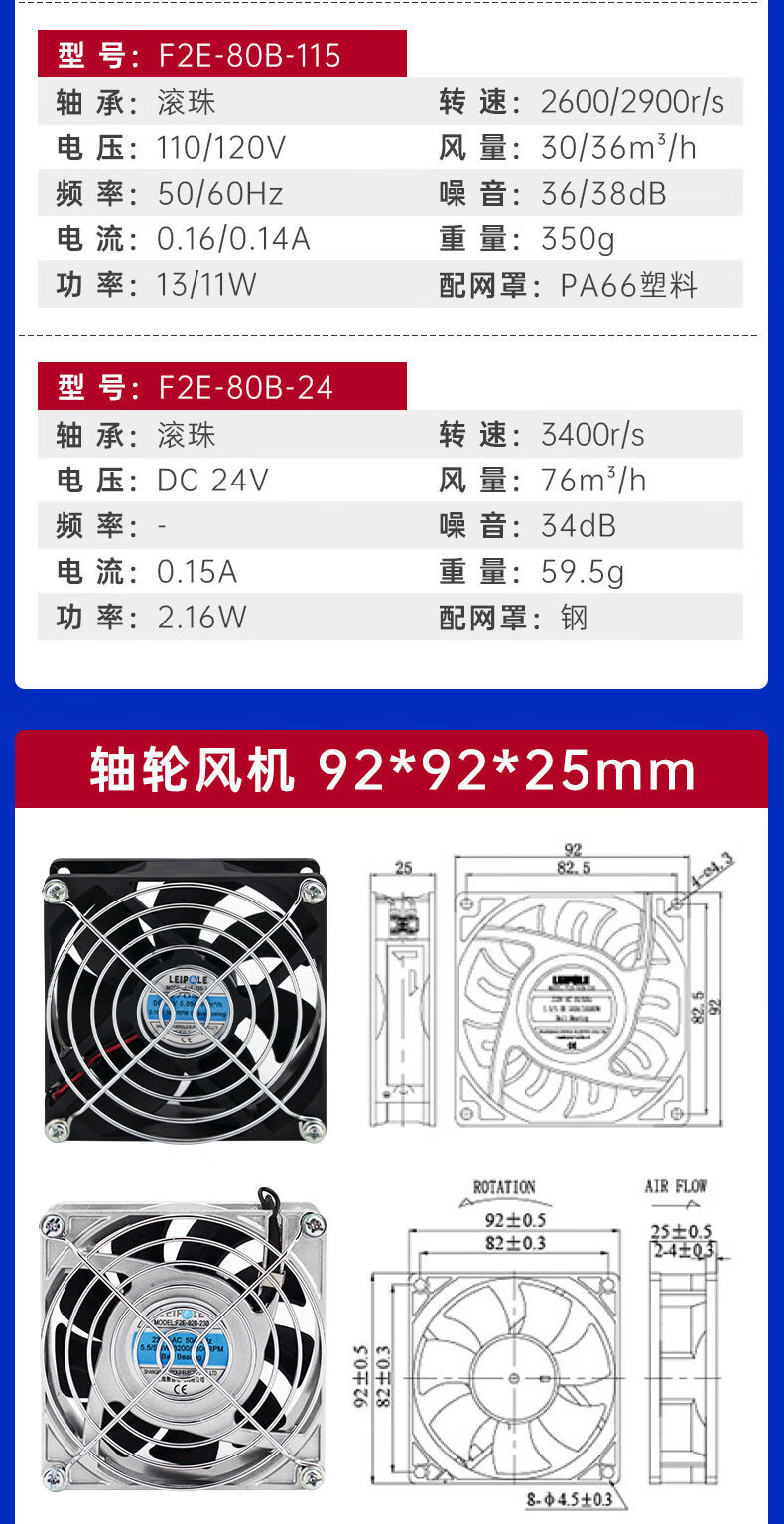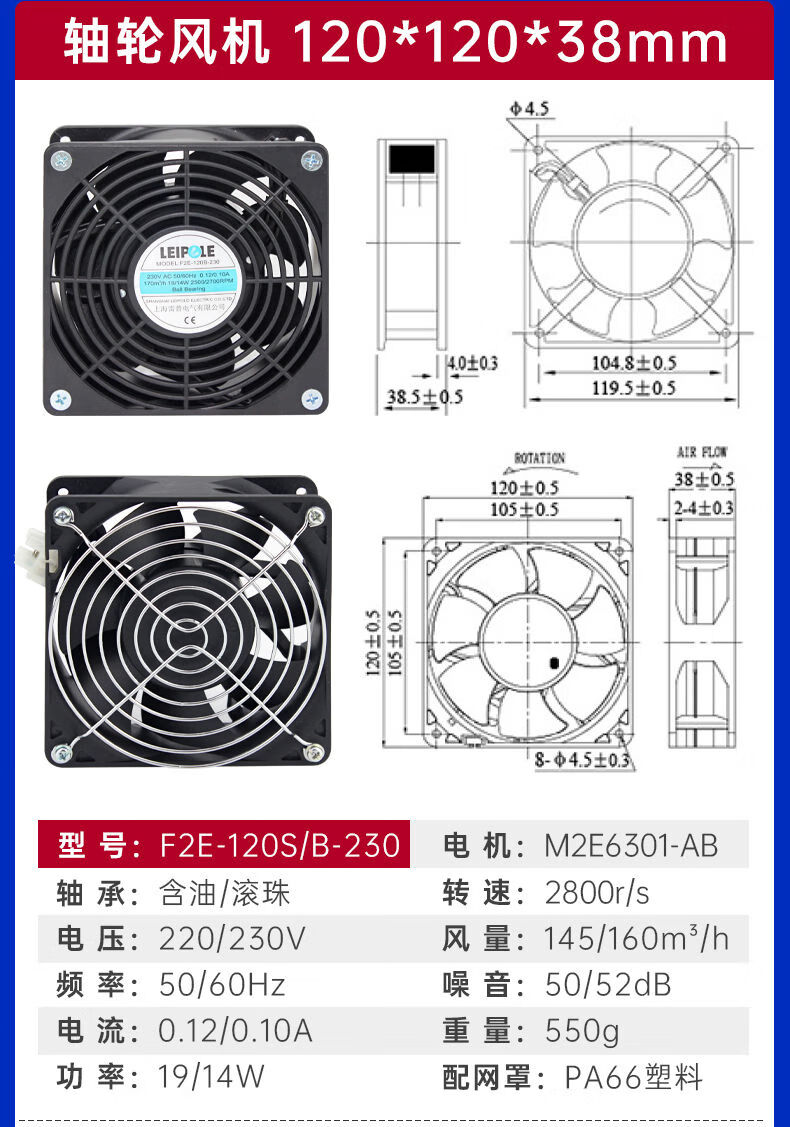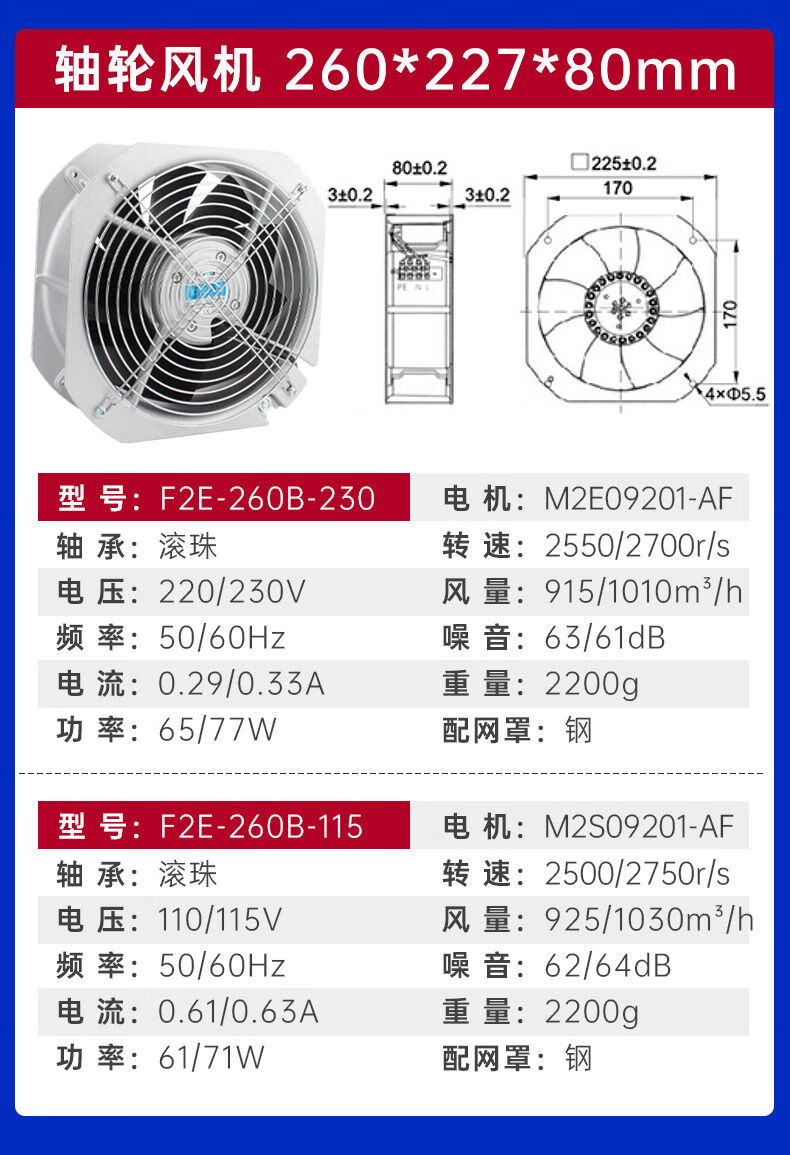 Shanghai Leipu cooling fan low-noise cabinet distribution box computer welding machine equipment axial flow fan motor upgrade F2E-260B-115