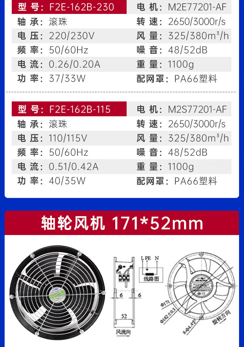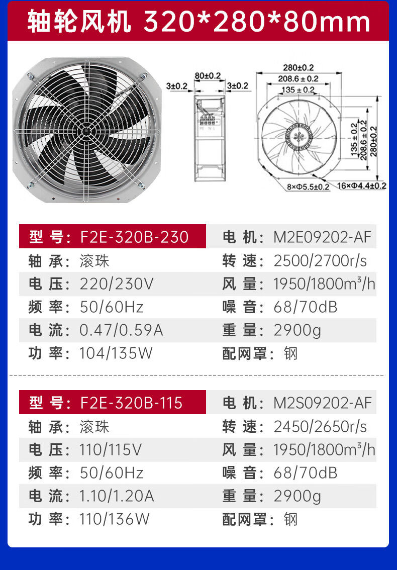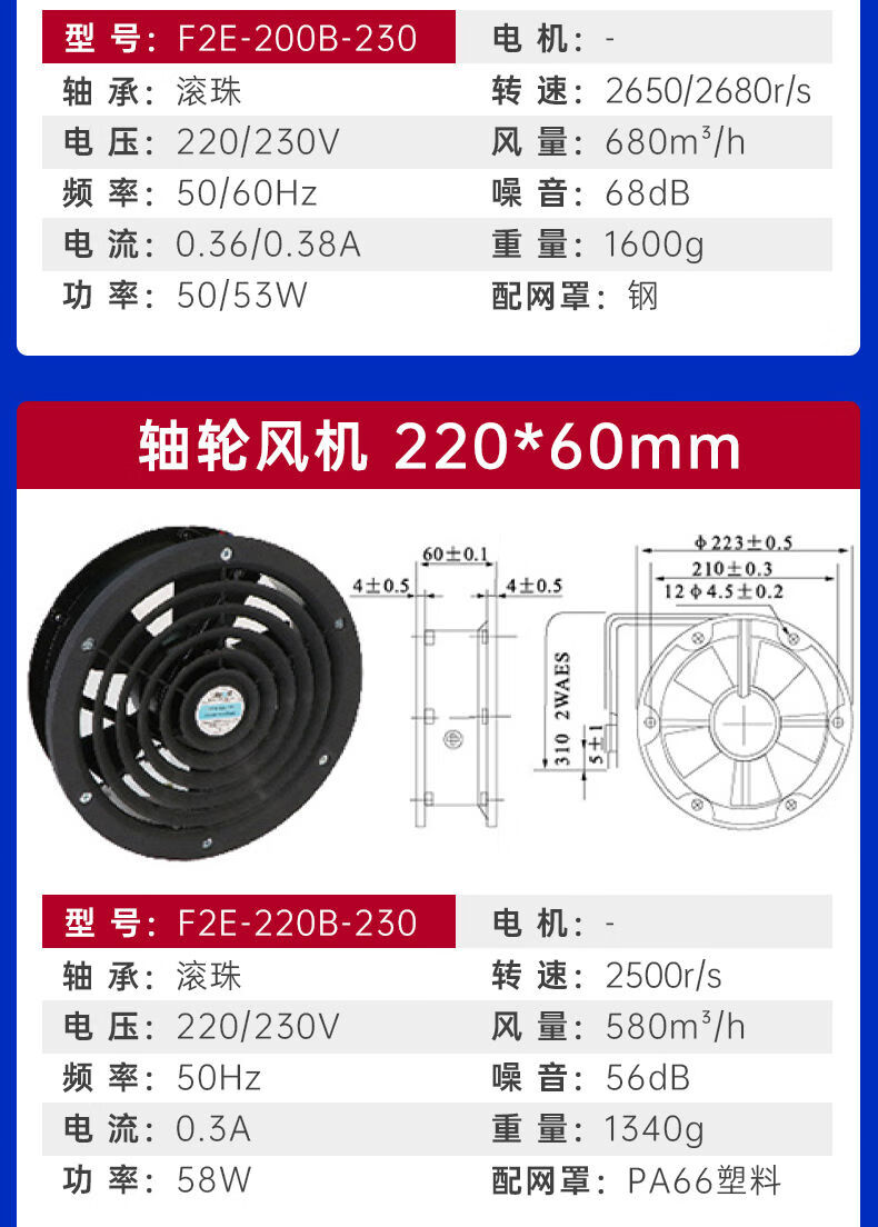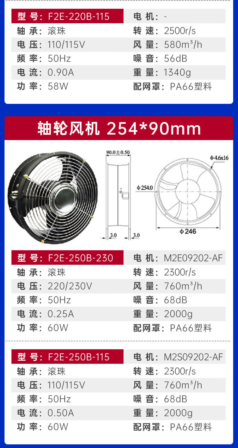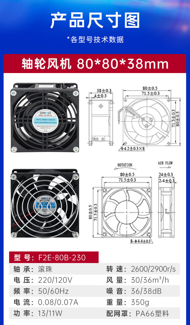 Shanghai Leipu cooling fan low-noise cabinet distribution box computer welding machine equipment axial flow fan motor upgrade F2E-260B-115