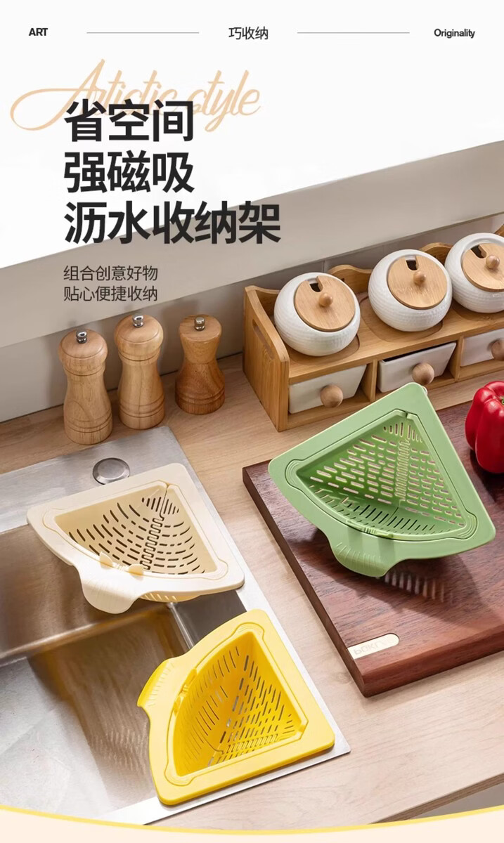 Pupan Magnetic Sink Drain Basket Household Triangular Suction Cup Kitchen Faucet Storage Rack for Filtering Leftovers Flagship Magnetic Style Ginger 1 Pack
