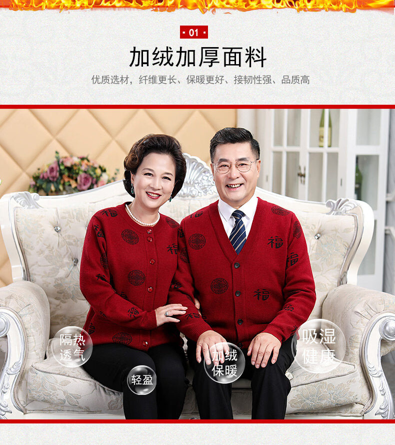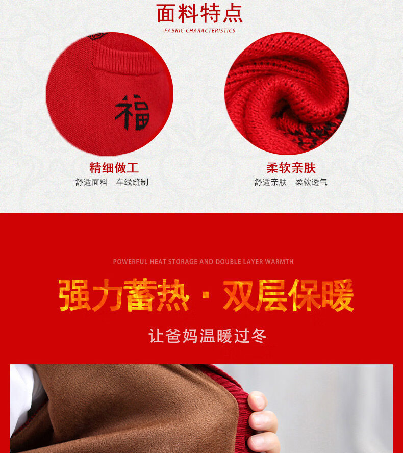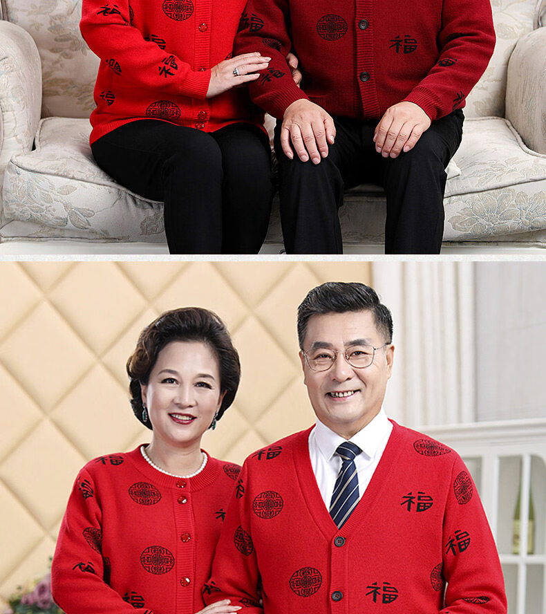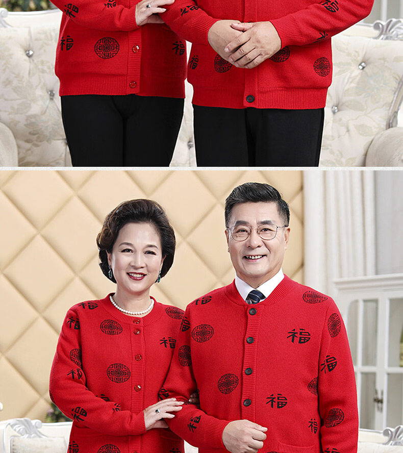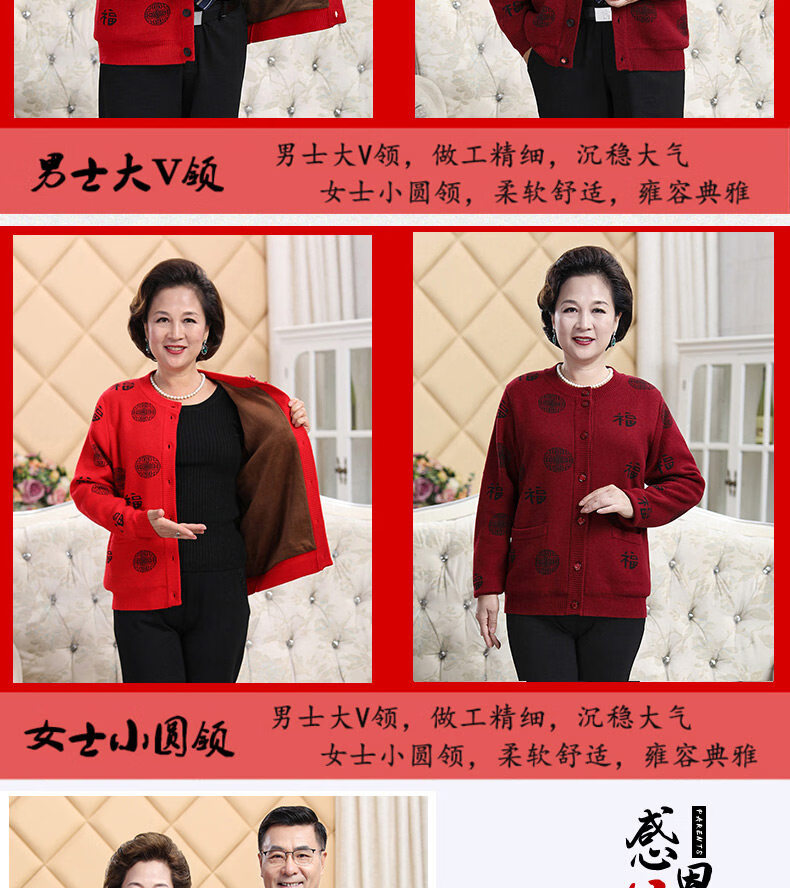 Hengyuanxiang middle-aged and elderly sweater cardigans for grandparents, red wool coats for their zodiac year, men's autumn and winter clothing, parents' clothing, brand father's clothing, maroon blessing word v-neck - plus pocket M, recommended for both men and women, 100-115 Jin Jin equals 0.5 kg