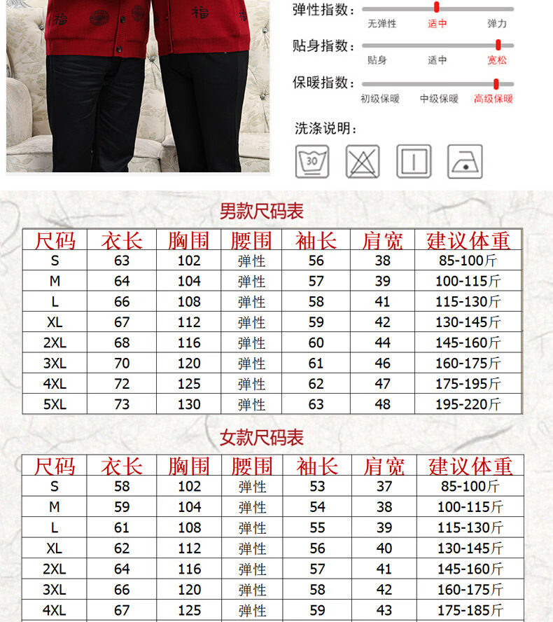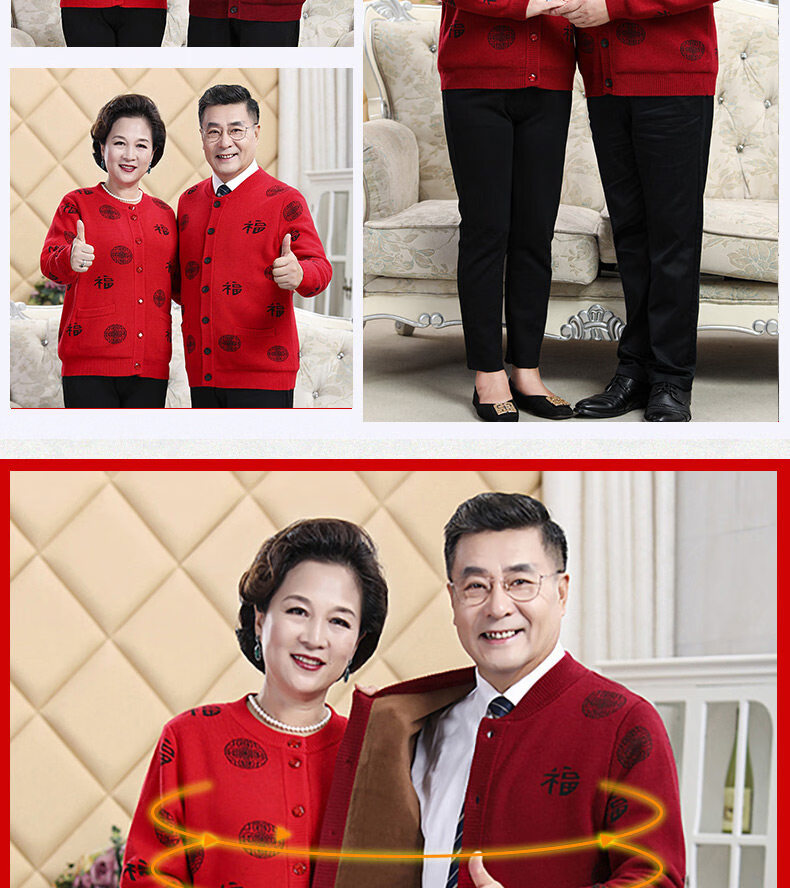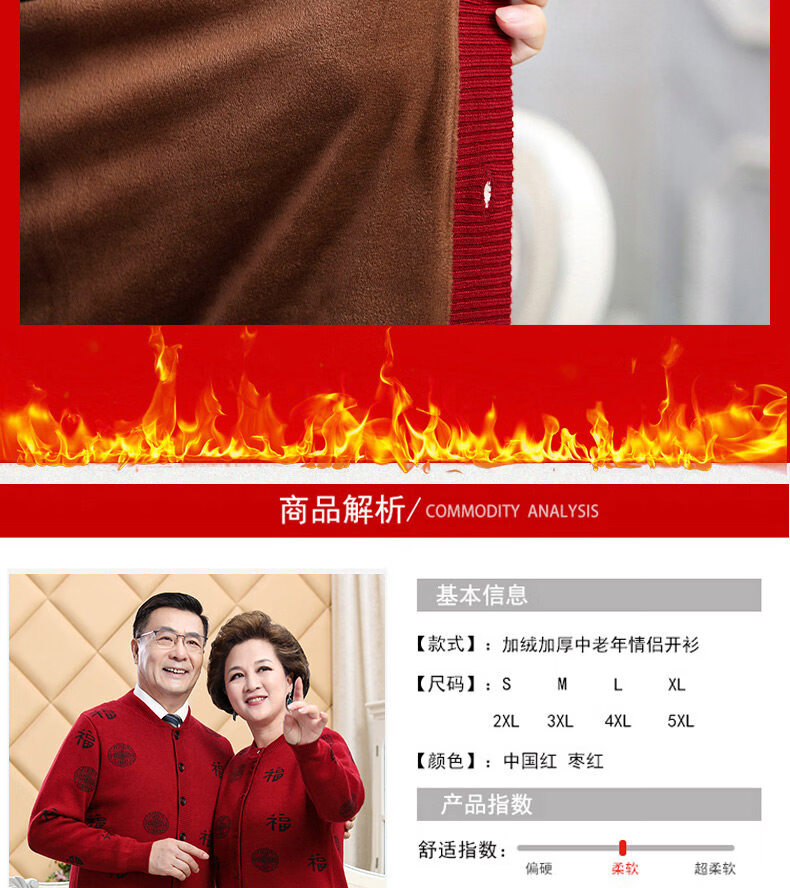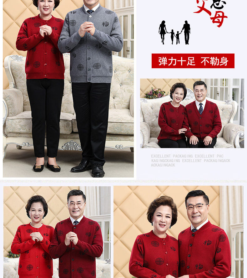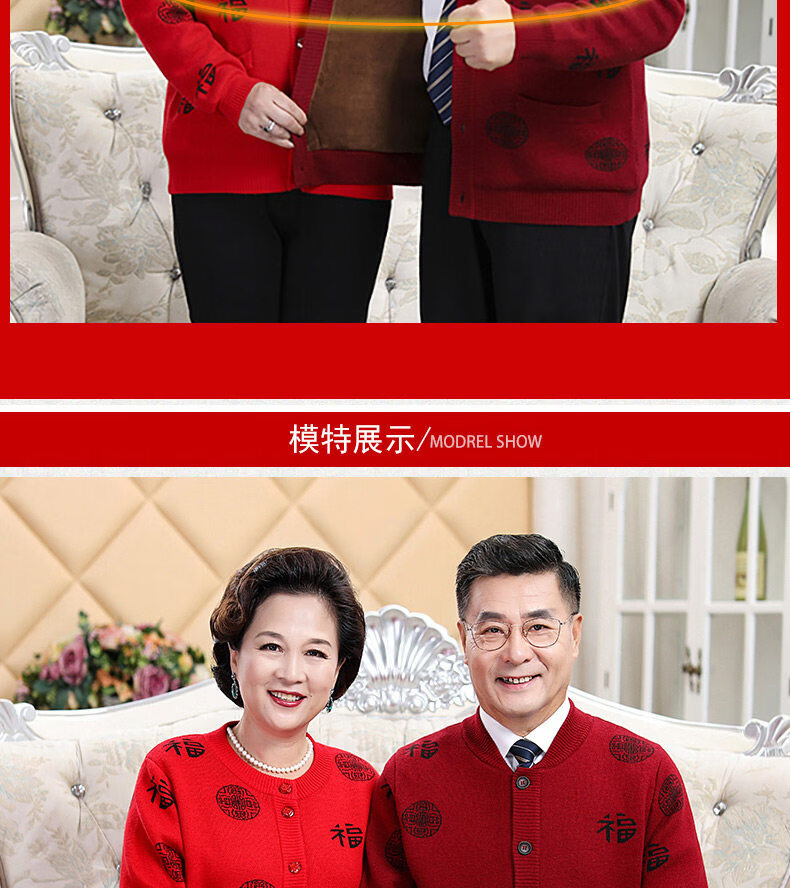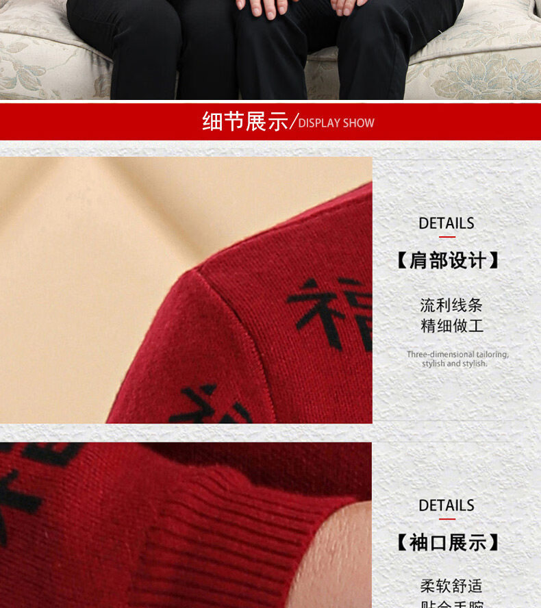 Hengyuanxiang middle-aged and elderly sweater cardigans for grandparents, red wool coats for their zodiac year, men's autumn and winter clothing, parents' clothing, brand father's clothing, maroon blessing word v-neck - plus pocket M, recommended for both men and women, 100-115 Jin Jin equals 0.5 kg
