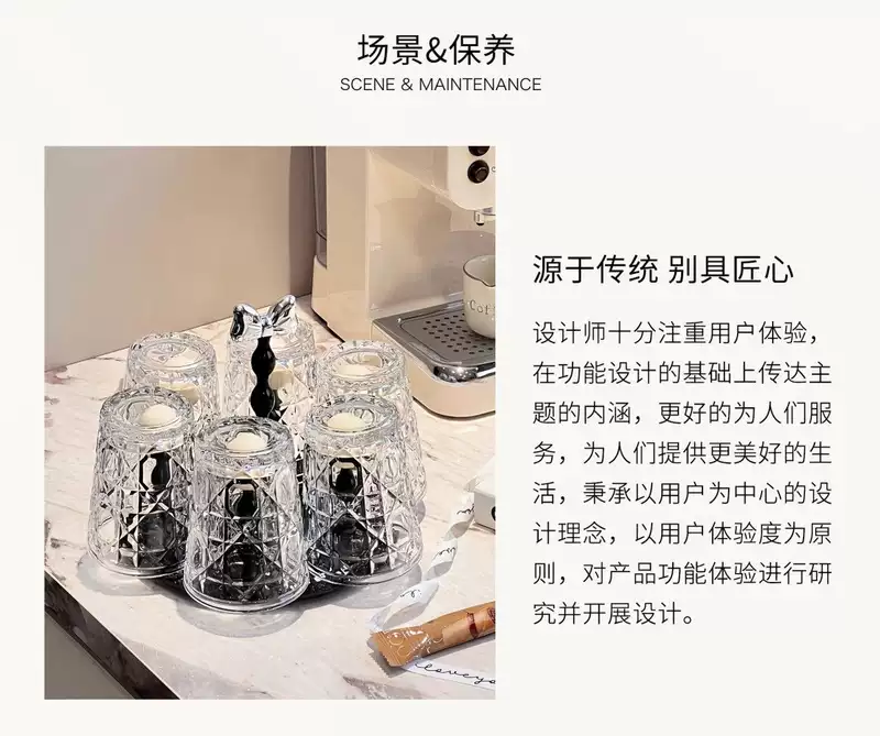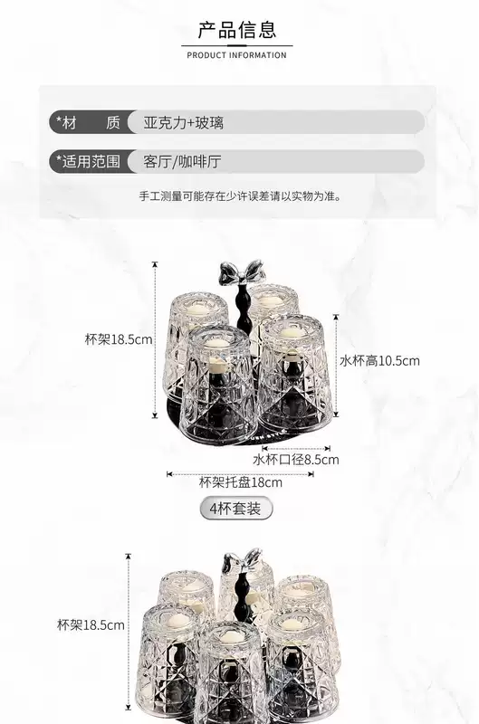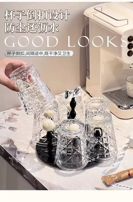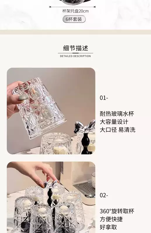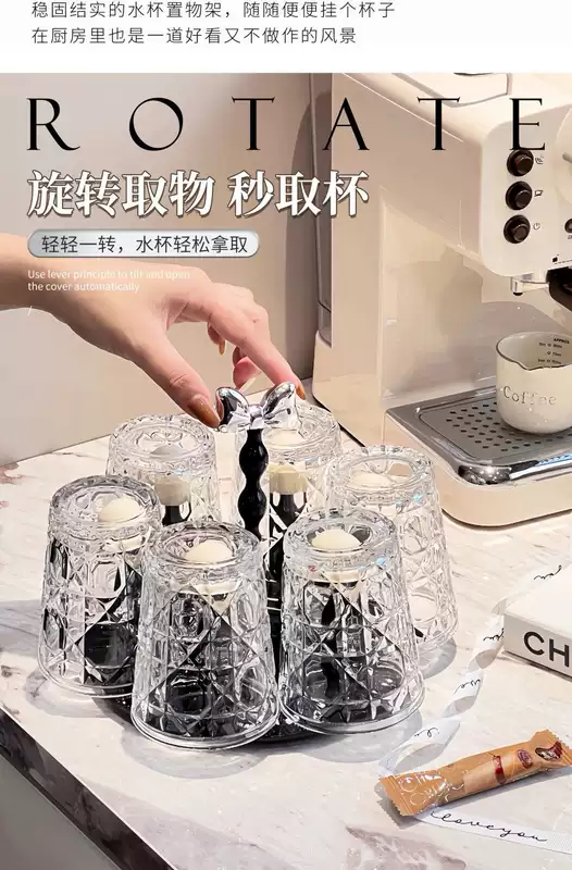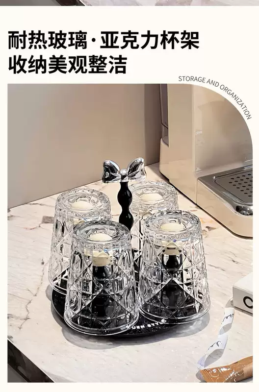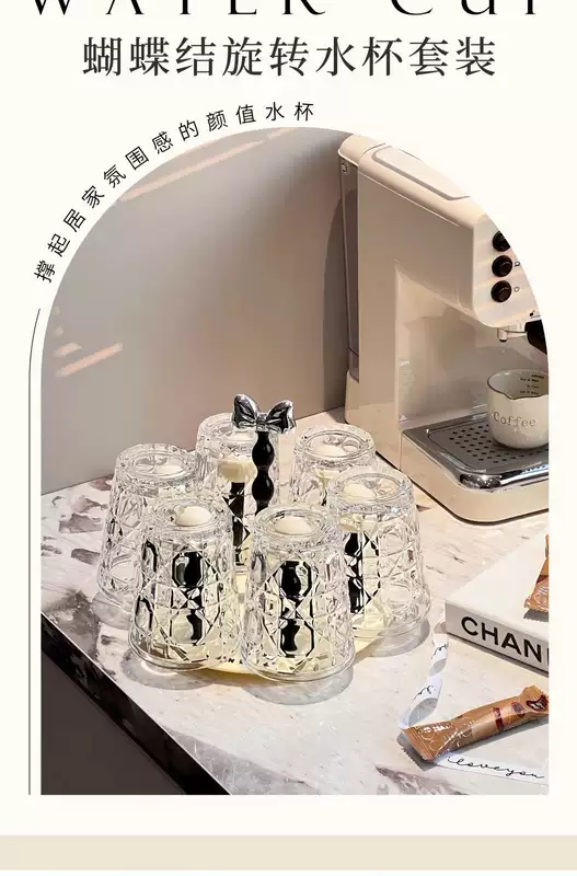 Yusenyi Bow Rotating Glass Cup Holder Water Cup Set Home High Temperature Resistant 2023 New Light Luxury Transparent Juice Cup 6 Cups with Rotating Cup Holder Cream Silver
